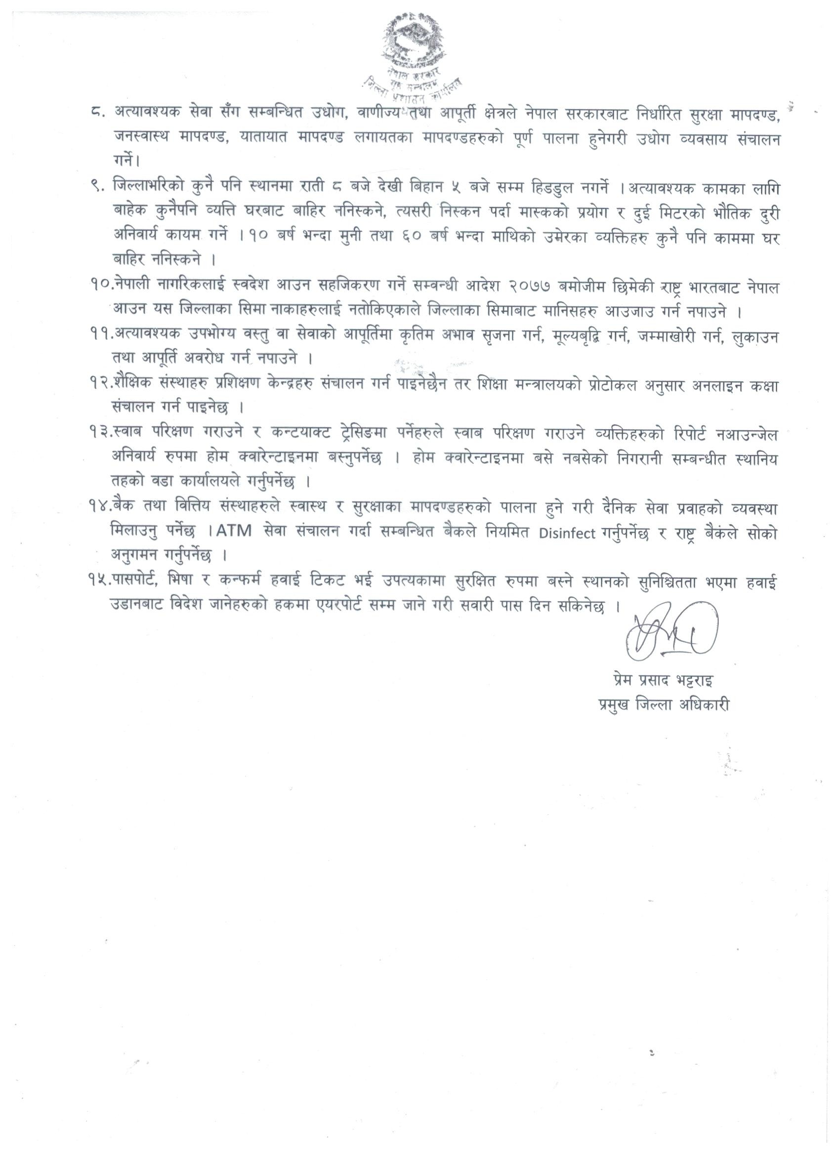 २०७७-५-२१ गते जिल्ला प्रशासन कार्यालय धनुषाबाट जारी गरिएको आदेश