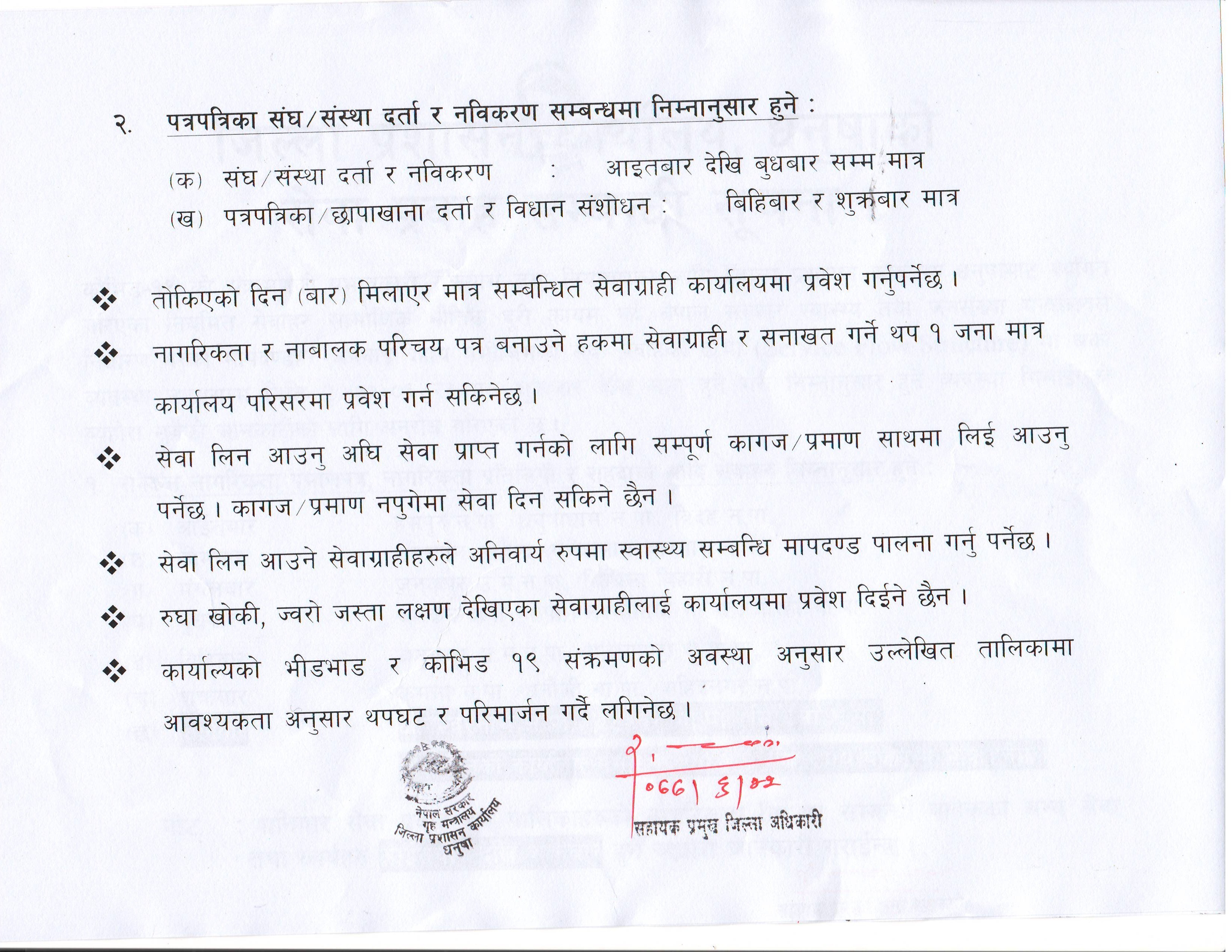 जिल्ला प्रशासन कार्यालय धनुषाको सेवा प्रवाह सम्बन्धी सूचना