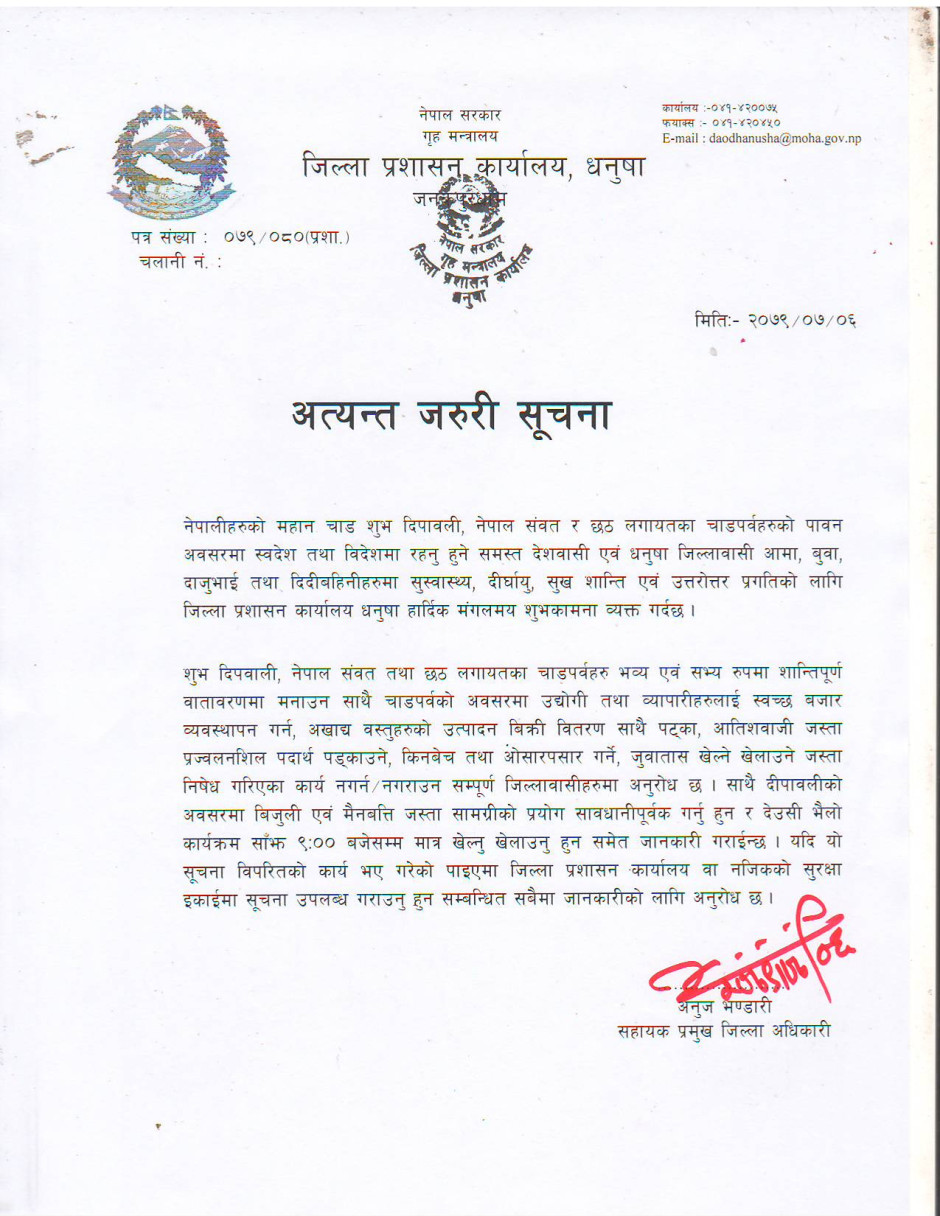 © सर्वाधिकार सुरक्षित जिल्ला प्रशासन कार्यालय, धनुषा