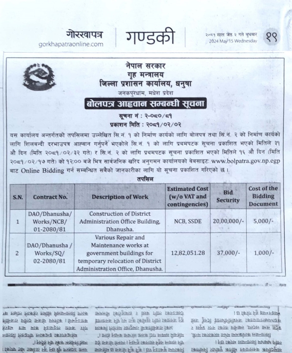 जिल्ला प्रशासन कार्यालय धनुषाबाट जारी गरिएको सूचना ।
