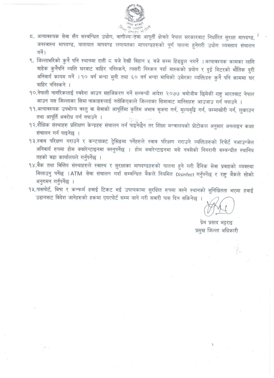 २०७७-५-२१ गते जिल्ला प्रशासन कार्यालय धनुषाबाट जारी गरिएको निषेधाज्ञा आदेश