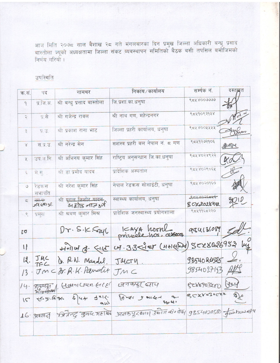 २०७८/०१/२८ गते जिल्ला संकट व्यवस्थापन समितिबाट भएको निर्णय