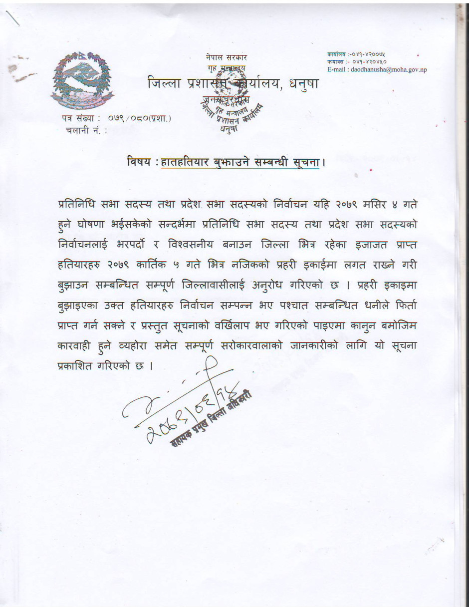 हातहतियार बुझाउने सम्बन्धी सूचना ।