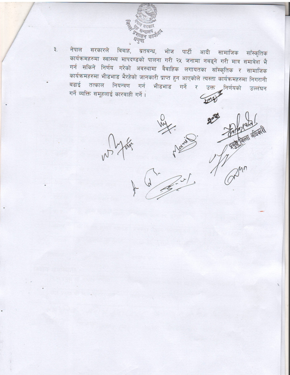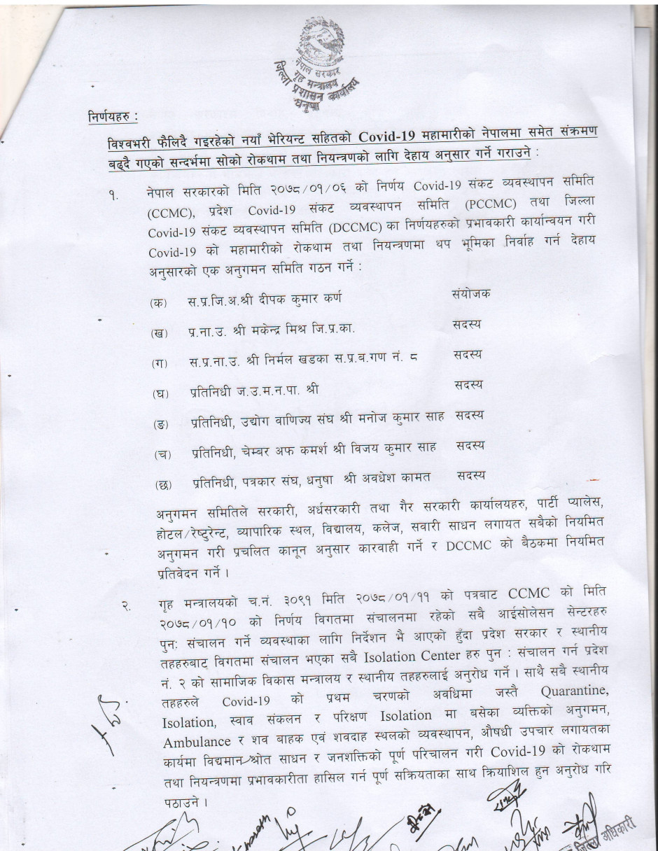 जिल्ला Covid-19 सँकट व्यवस्थापन केन्द्र (DCCMC) को मिति २०७८/०१/१२ को निर्णय