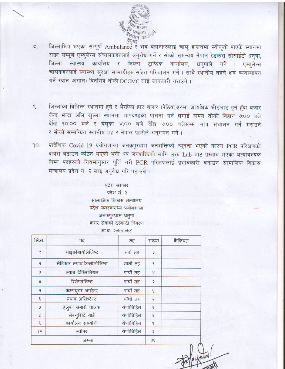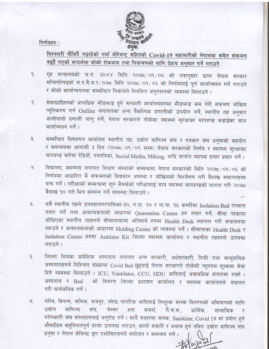 जिल्ला Covid-19 सँकट व्यवस्थापन केन्द्र (DCCMC) को मिति २०७८/०१/०७ को निर्णय