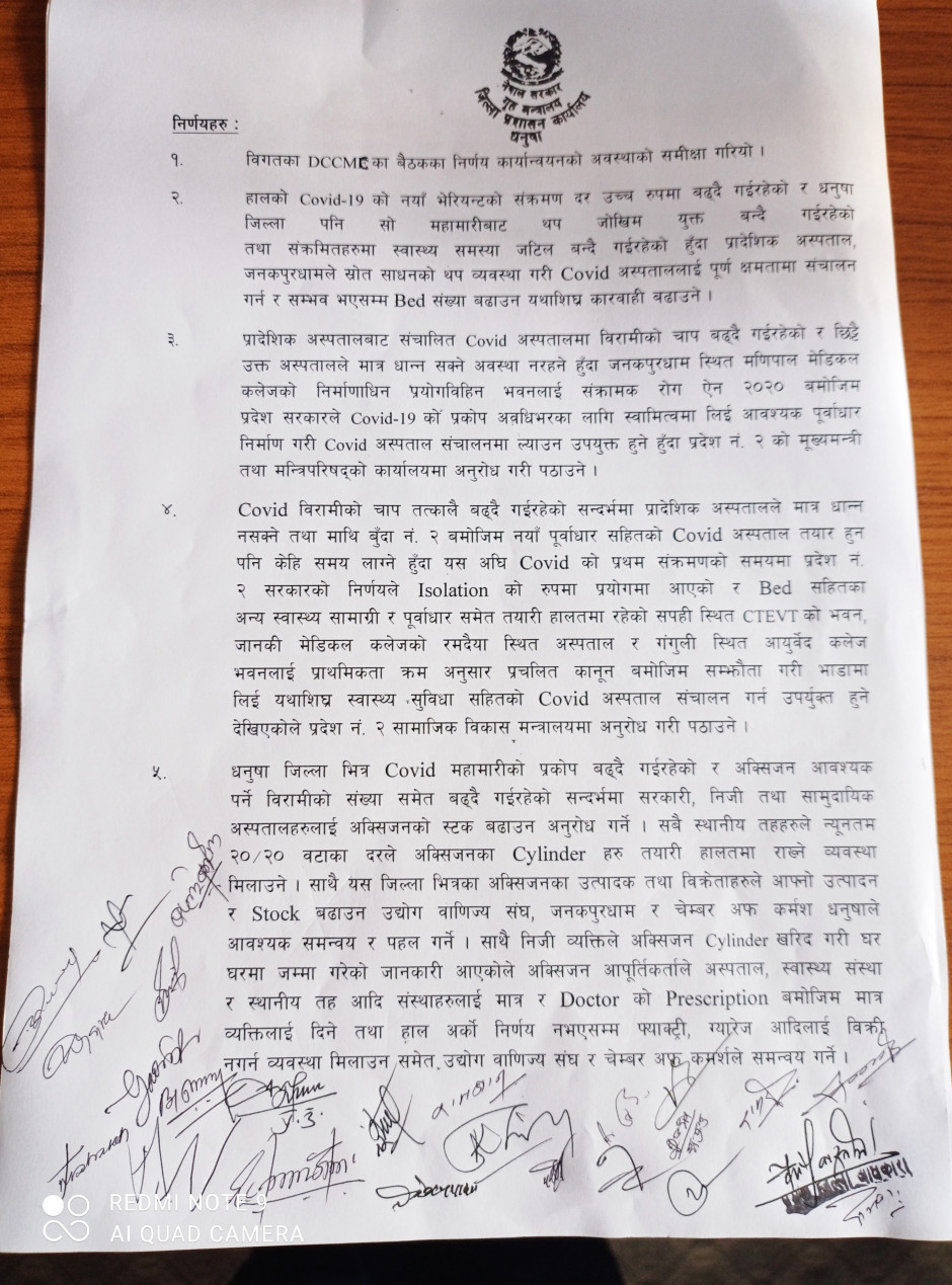 जिल्ला Covid-19 सँकट व्यवस्थापन समिति (DCCMC) को मिति २०७८/०१/१९ को निर्णय