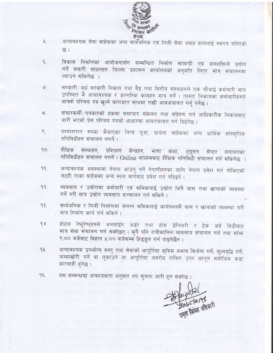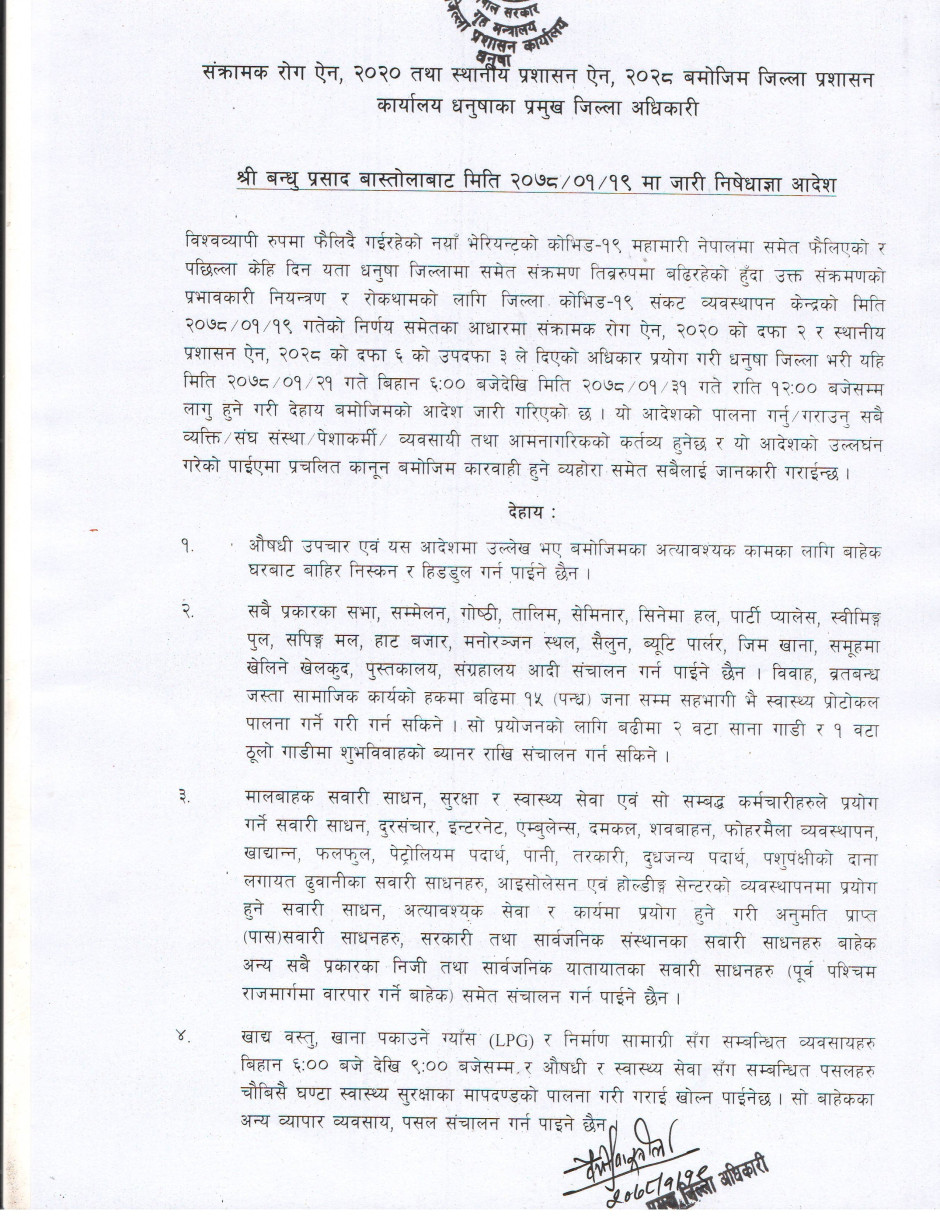 जिल्ला प्रशासन कार्यालय धनुषाबाट जारी गरिएको निषेधाज्ञा आदेश
