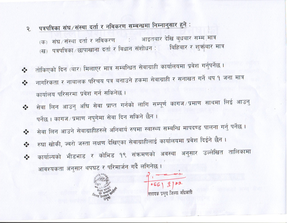 जिल्ला प्रशासन कार्यालय धनुषाको सेवा प्रवाह सम्बन्धी सूचना