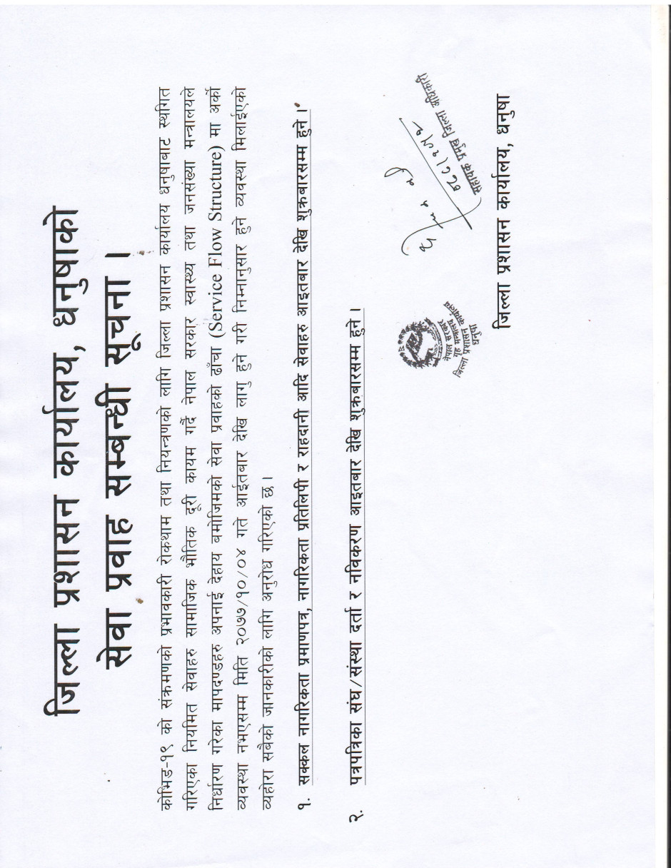 जिल्ला प्रशासन कार्यालय धनुषाको सेवा प्रवाह सम्बन्धी सूचना