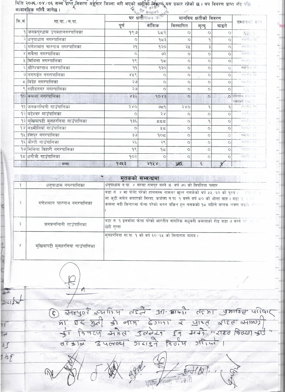 २०७६/०४/०७ गते जिल्ला विपद् व्यवस्थापन समितिको बैठक बसेको निर्णय