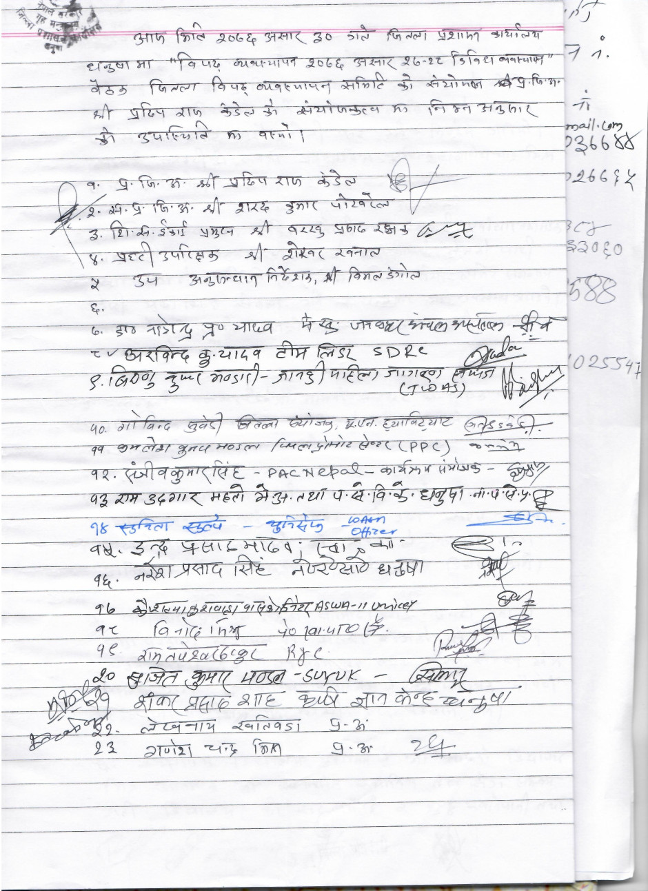 जिल्ला विपद् व्यवस्थापन समिति, धनुषाका बैठक २०७६/०३/३०