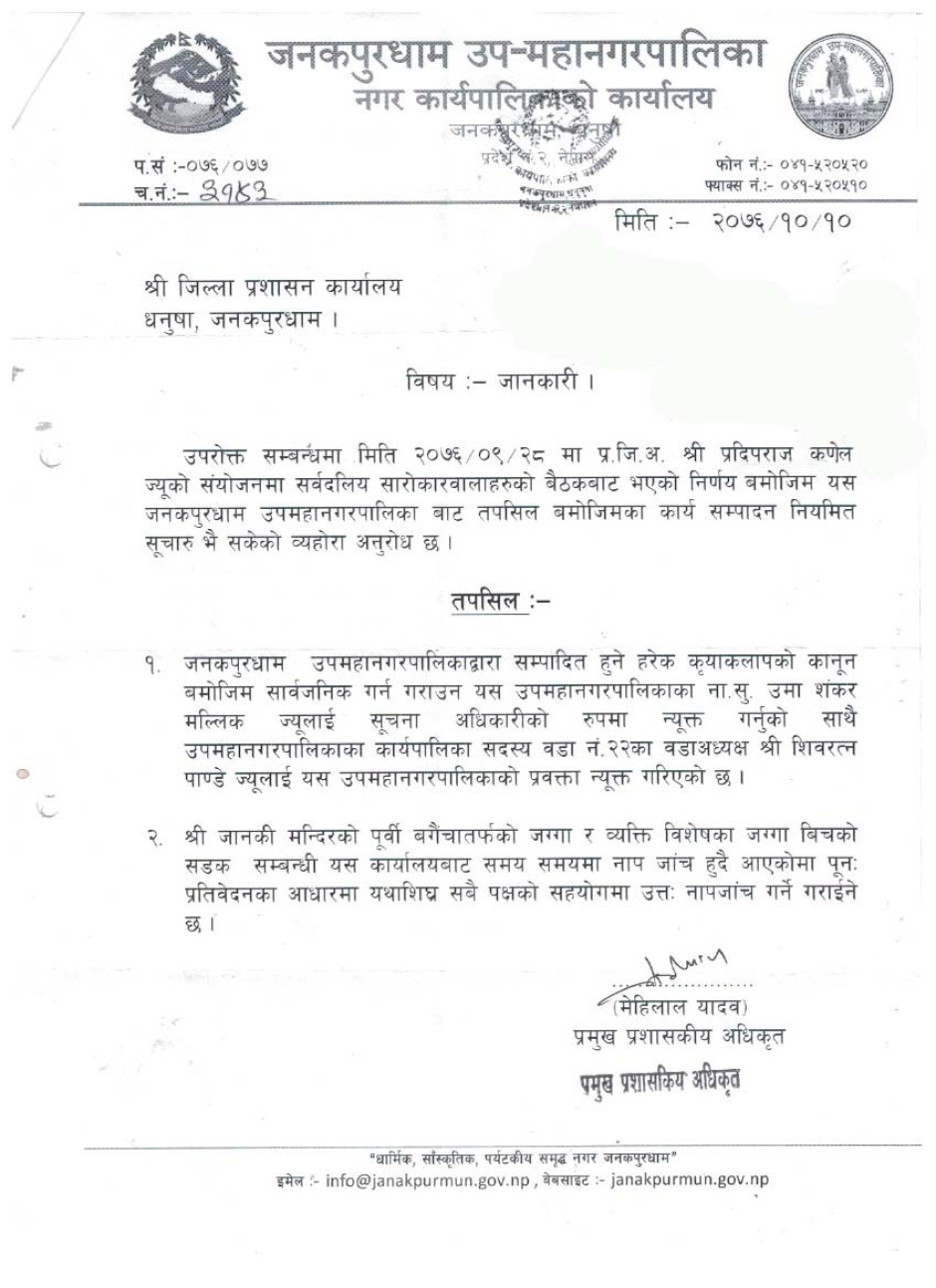 © सर्वाधिकार सुरक्षित जिल्ला प्रशासन कार्यालय, धनुषा