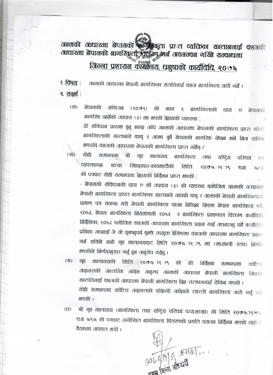 जन्मको आधारका संततीलाई वंशज नागरिकता दिने कार्यविधि