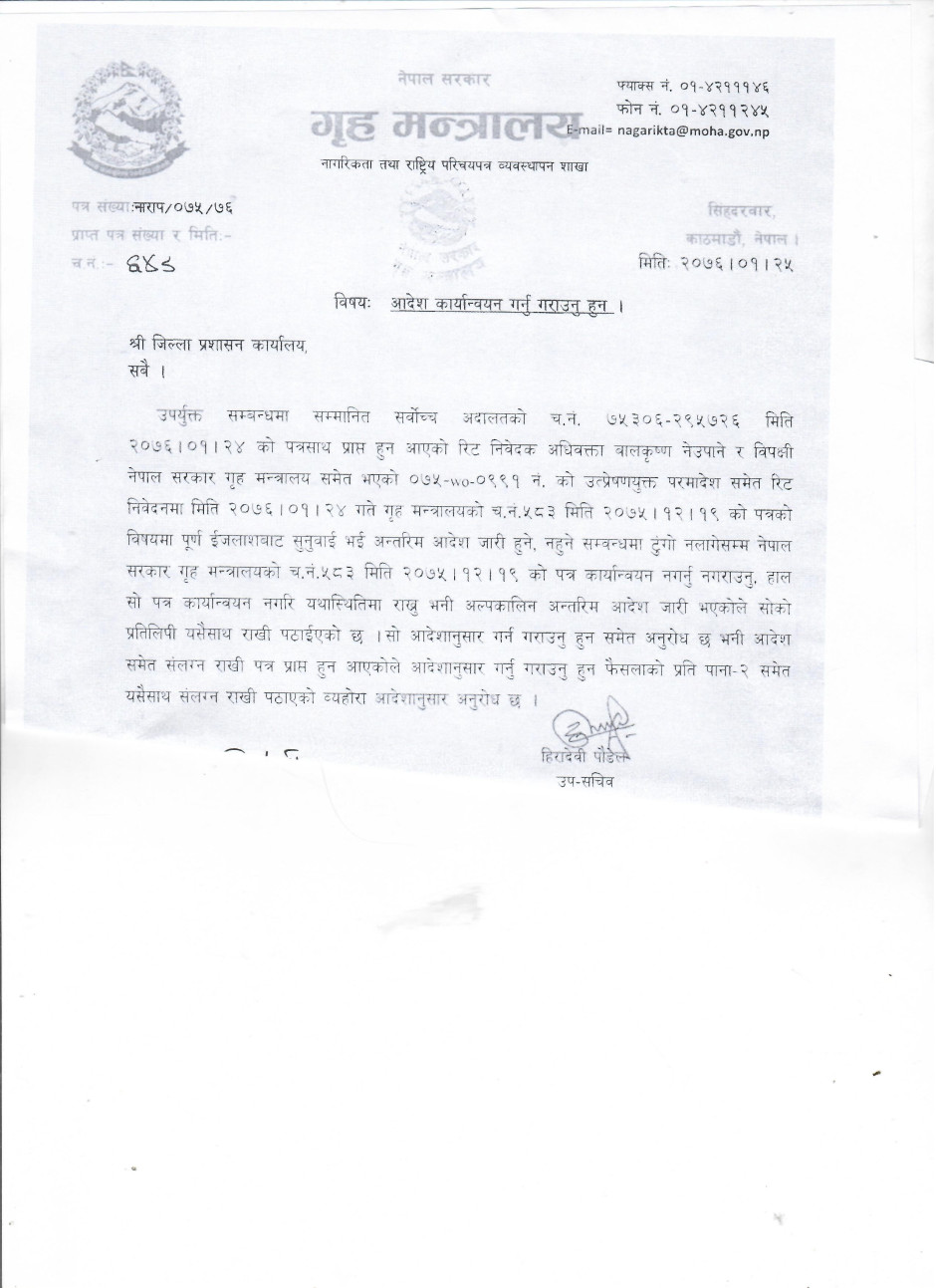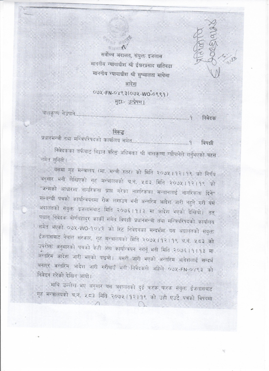 जन्मको आधारका सन्तानको वंशज नेपाली नागरिकता संबन्धी श्री सर्वोच्च अदालतको ०७५–FN–०४९३ (०७५–WO–०९९१) हेर्नुहोस
