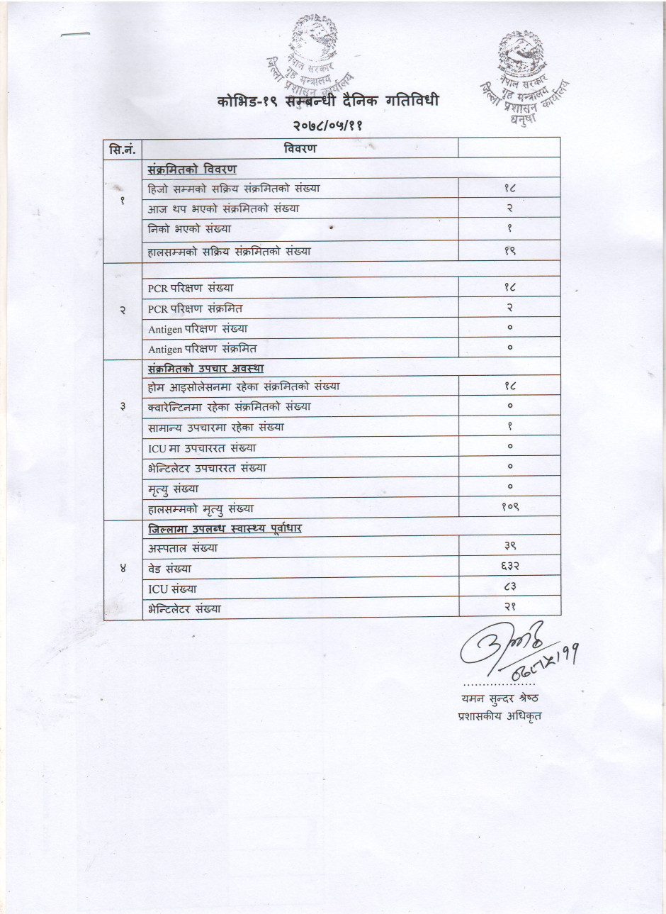२०७८/०५/११ काेभिड १९ सम्बन्धी दैनिक गतिविधी