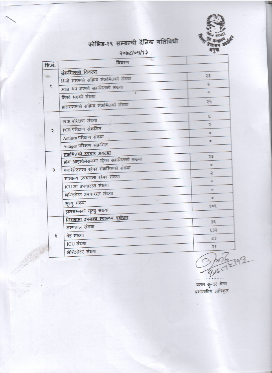 २०७८/०५/१३ काेभिड १९ सम्बन्धी दैनिक गतिविधी