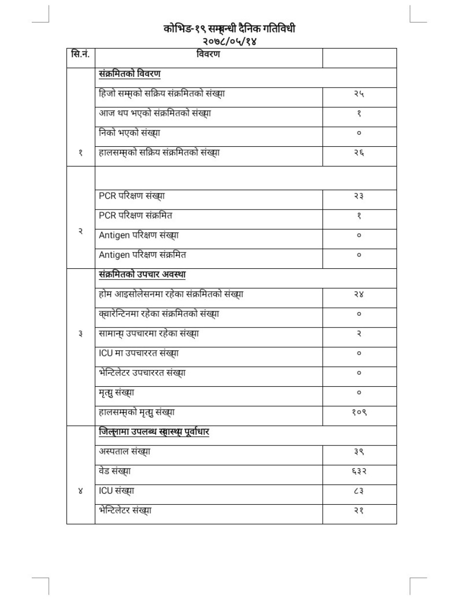 २०७८/०५/१४ काेभिड १९ सम्बन्धी दैनिक गतिविधी