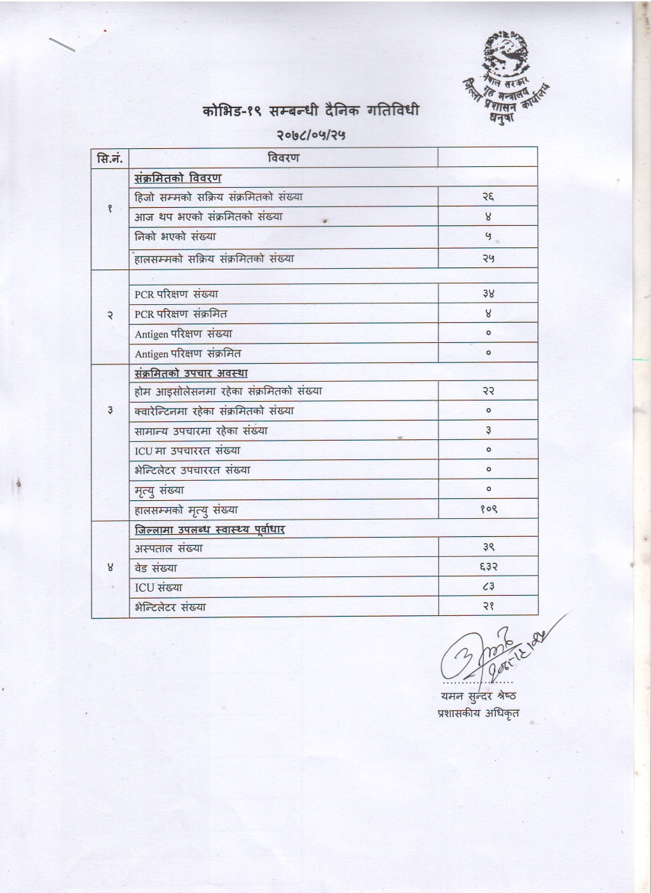 २०७८/०५/२५ काेभिड १९ सम्बन्धी दैनिक गतिविधी
