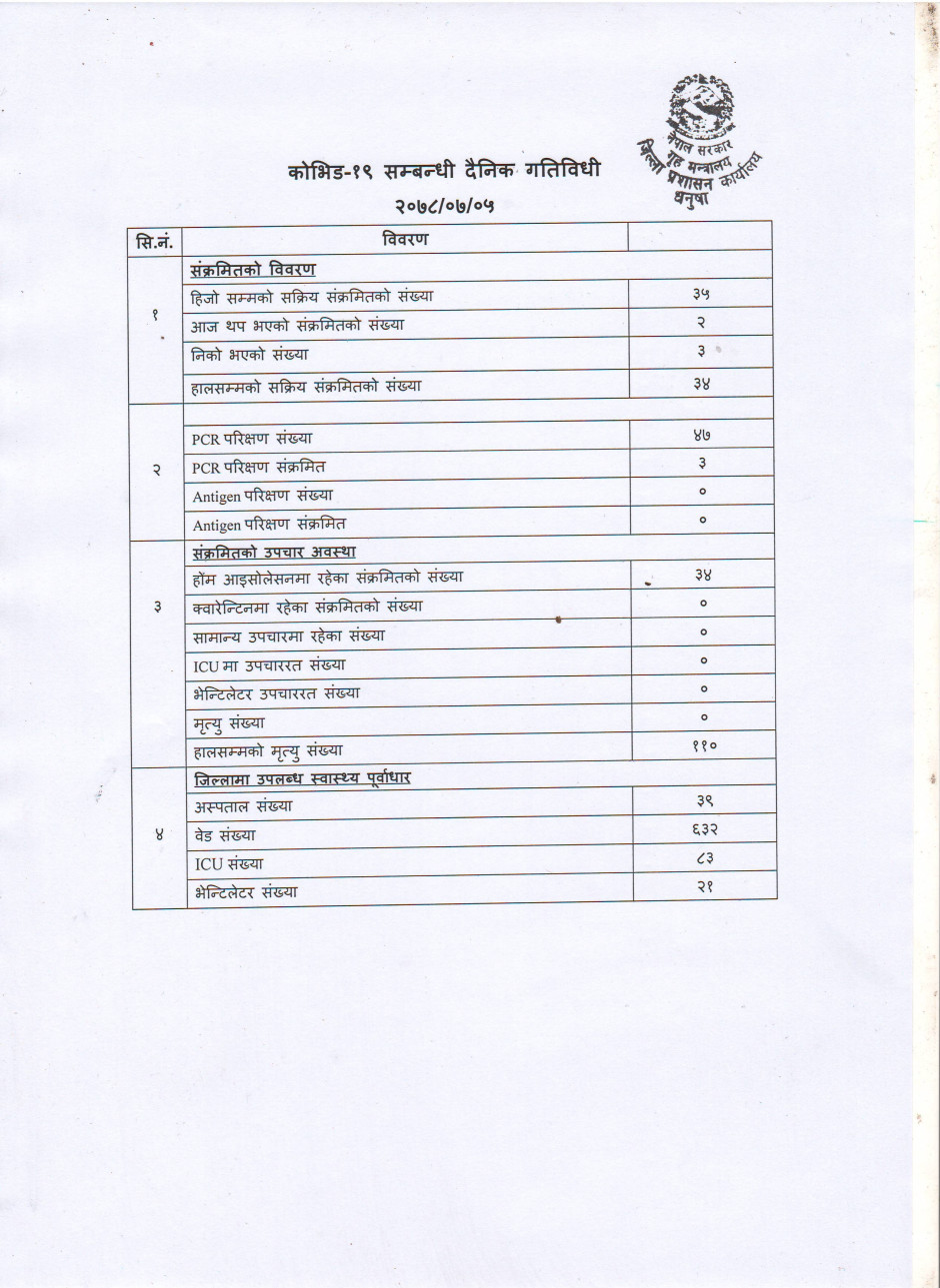 २०७८/०७/०५ काेभिड १९ सम्बन्धी दैनिक गतिविधी