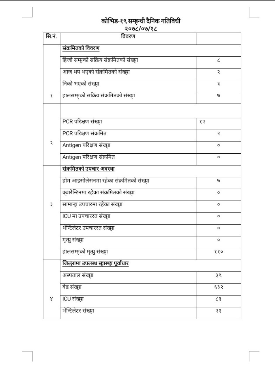 २०७८/०७/१८ काेभिड १९ सम्बन्धी दैनिक गतिविधी