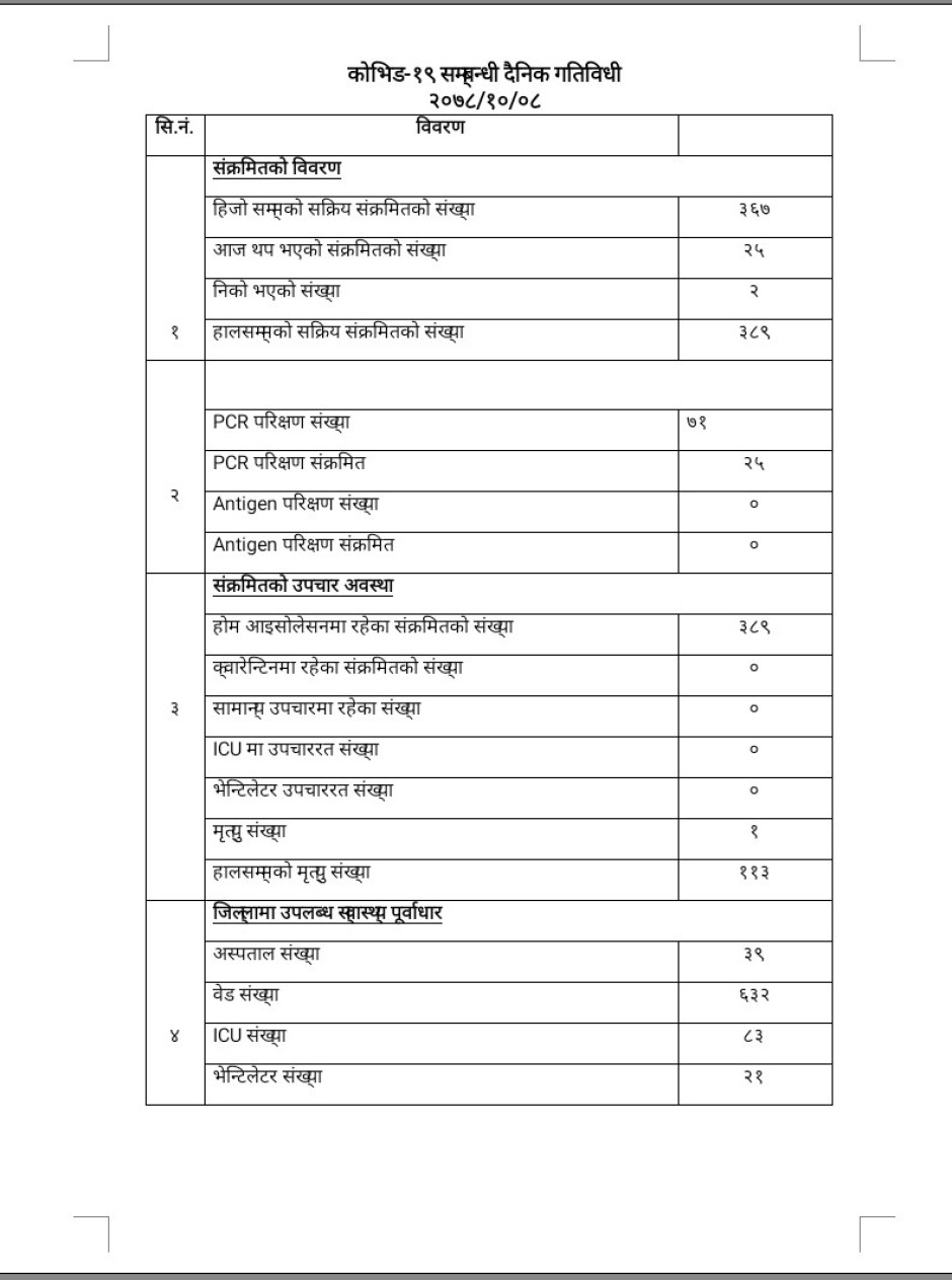 २०७८/१०/०८ काेभिड १९ सम्बन्धी दैनिक गतिविधी