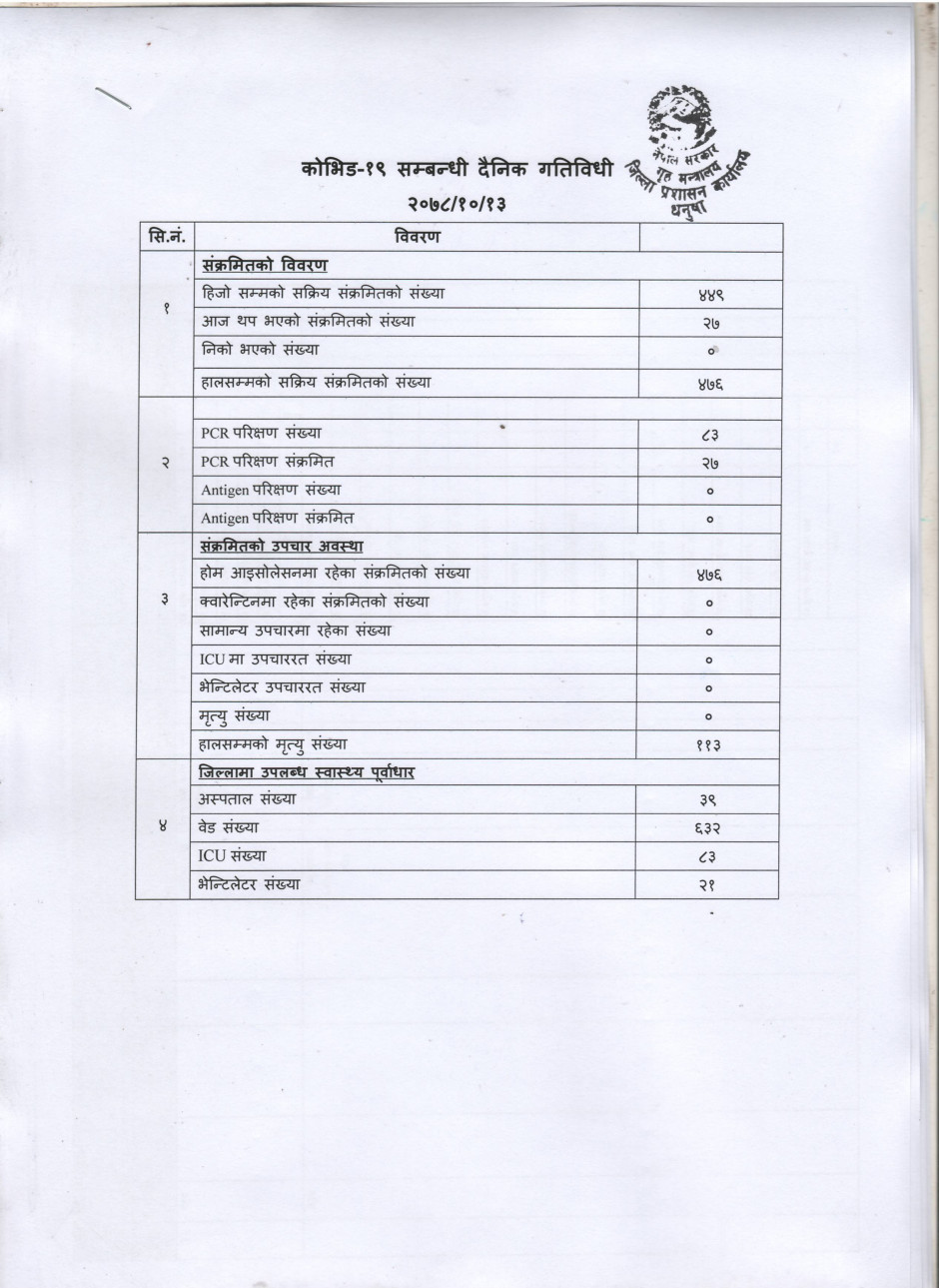 २०७८/१०/१३ काेभिड १९ सम्बन्धी दैनिक गतिविधी