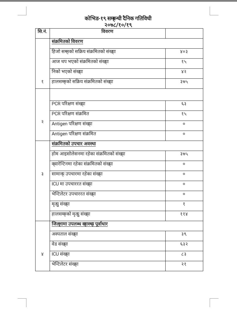 २०७८/१०/१९ काेभिड १९ सम्बन्धी दैनिक गतिविधी
