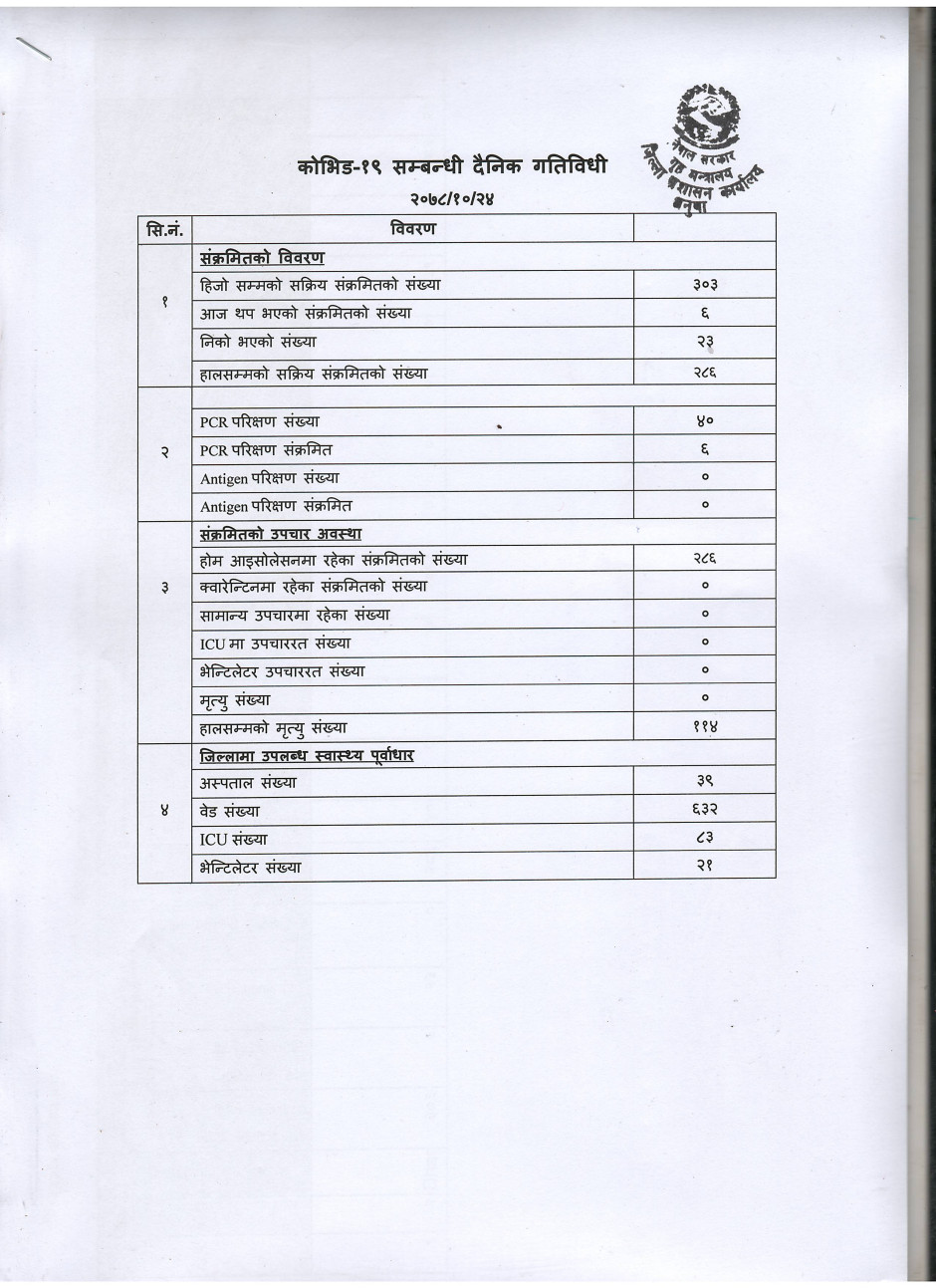 २०७८/१०/२४ काेभिड १९ सम्बन्धी दैनिक गतिविधी
