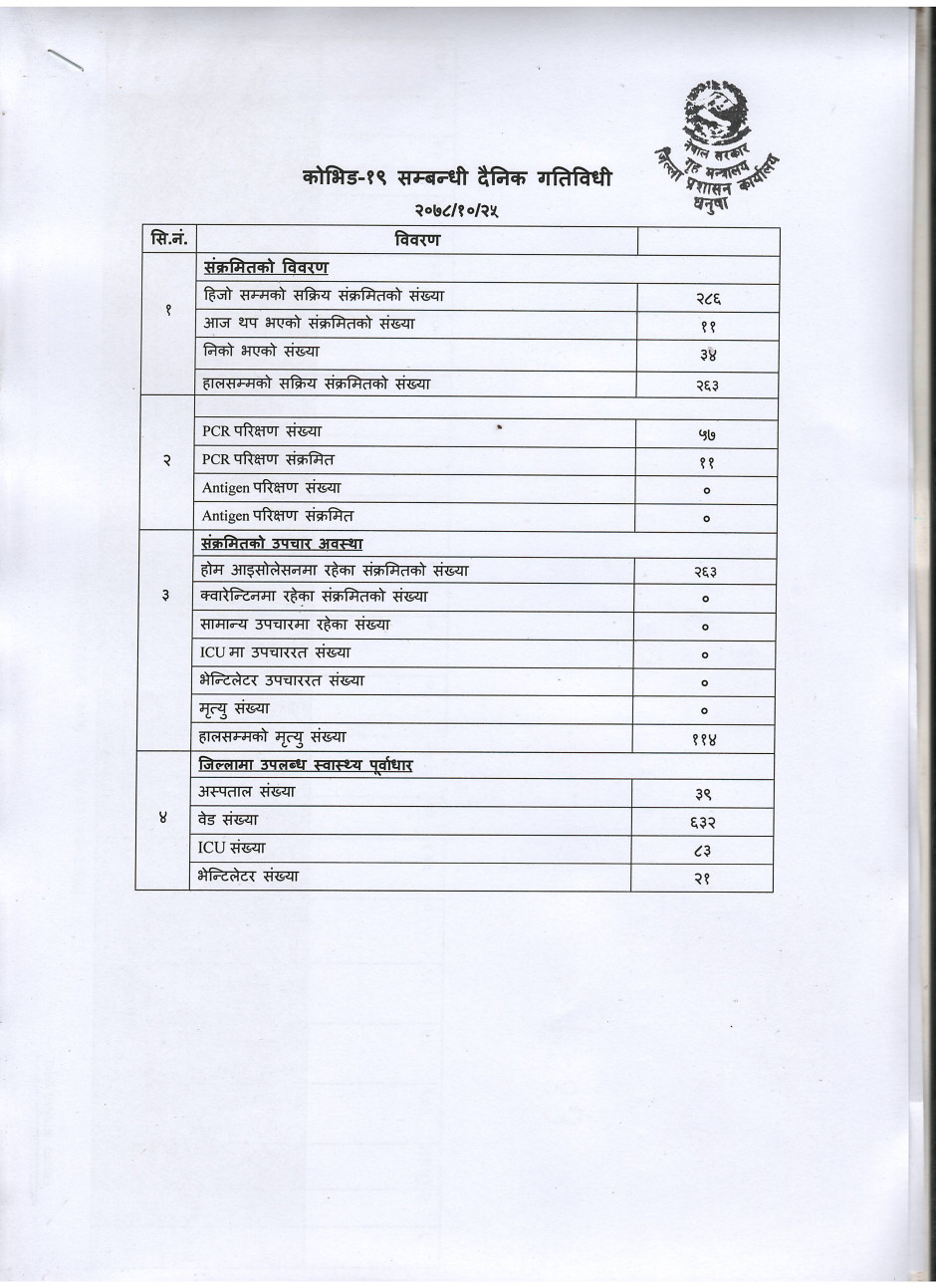 २०७८/१०/२५ काेभिड १९ सम्बन्धी दैनिक गतिविधी