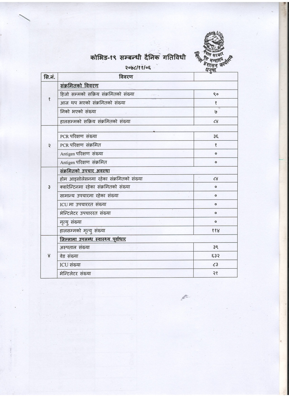 २०७८/११/०६ काेभिड १९ सम्बन्धी दैनिक गतिविधी