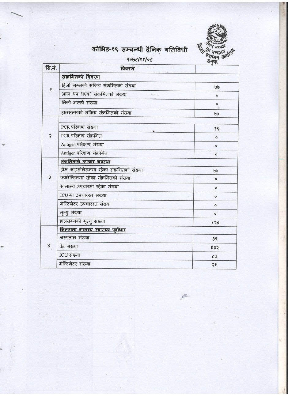 २०७८/११/०८ काेभिड १९ सम्बन्धी दैनिक गतिविधी