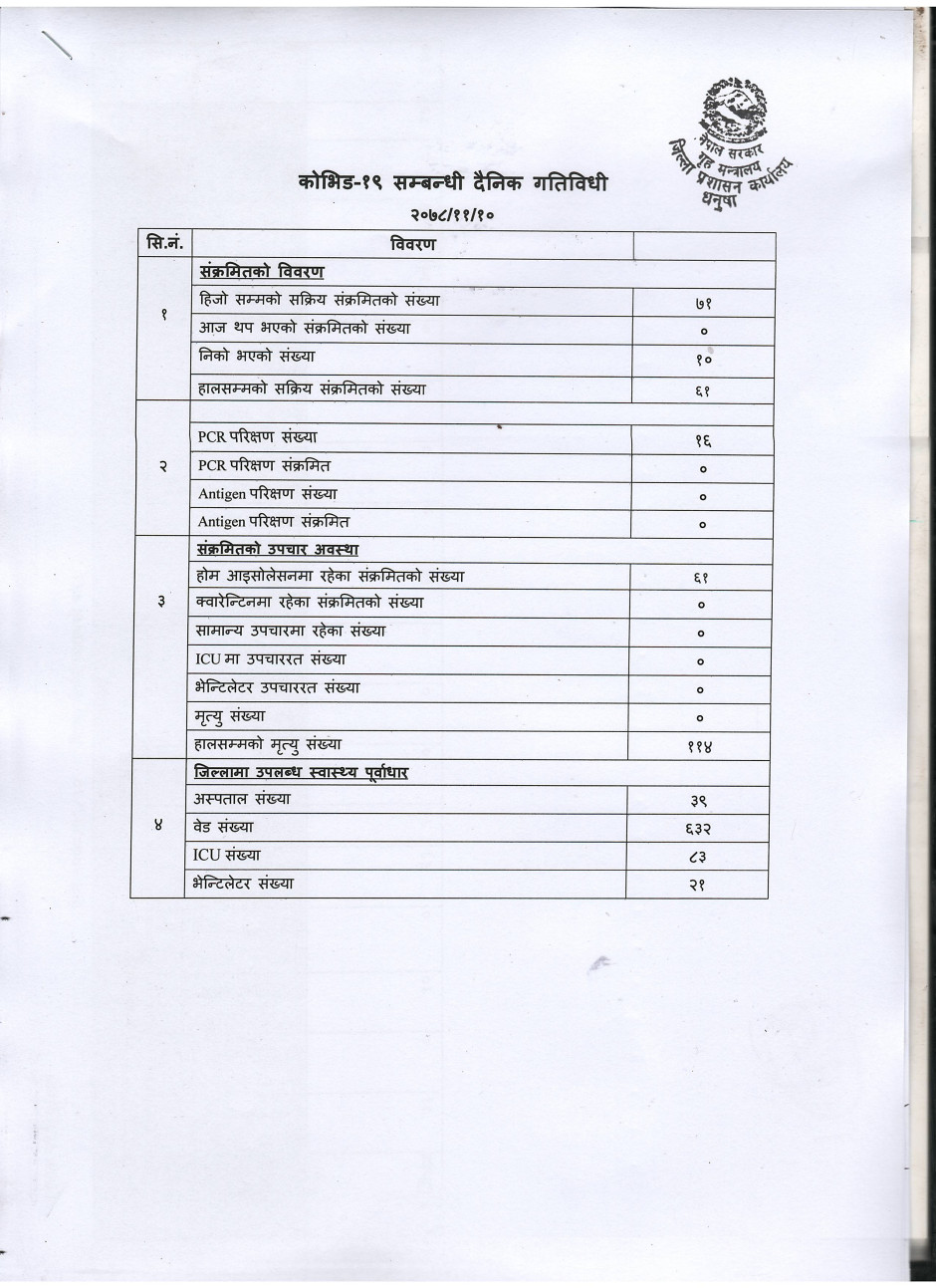 २०७८/११/१० काेभिड १९ सम्बन्धी दैनिक गतिविधी