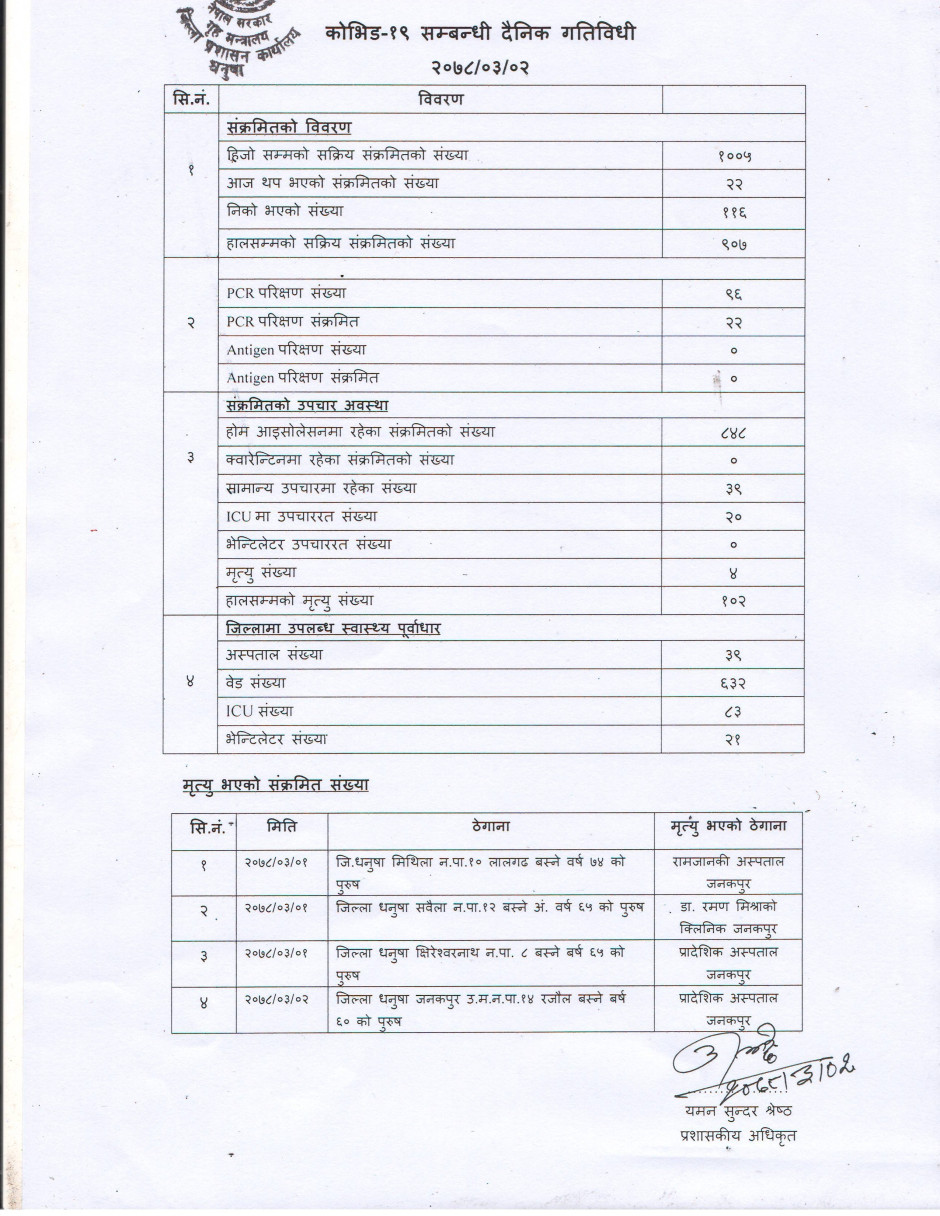 २०७८/०३/०२ काेभिड १९ सम्बन्धी दैनिक गतिविधी