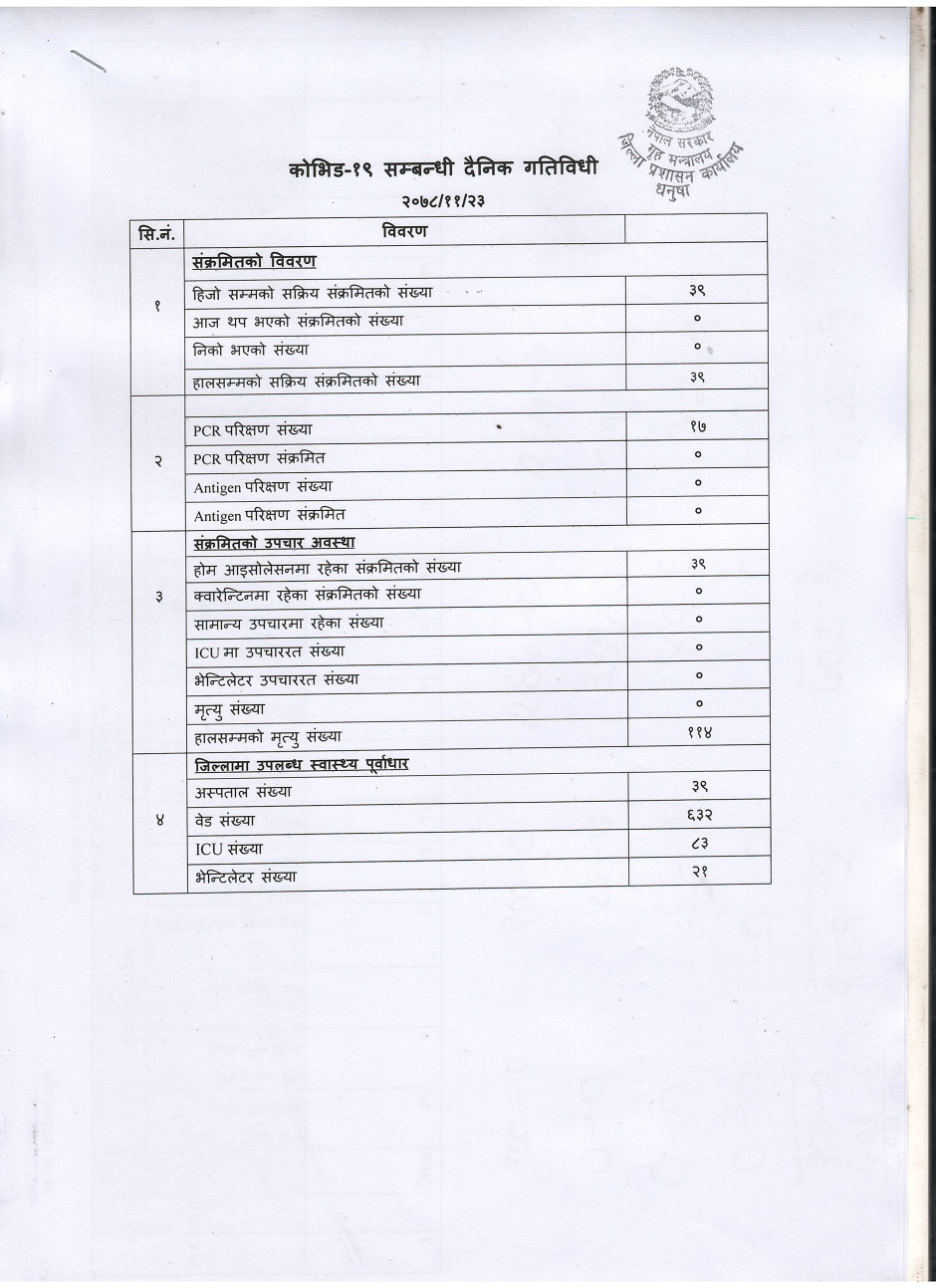 २०७८/११/२३ काेभिड १९ सम्बन्धी दैनिक गतिविधी
