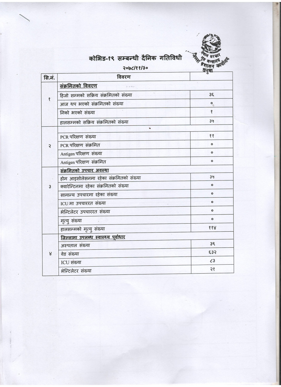 २०७८/११/३० काेभिड १९ सम्बन्धी दैनिक गतिविधी