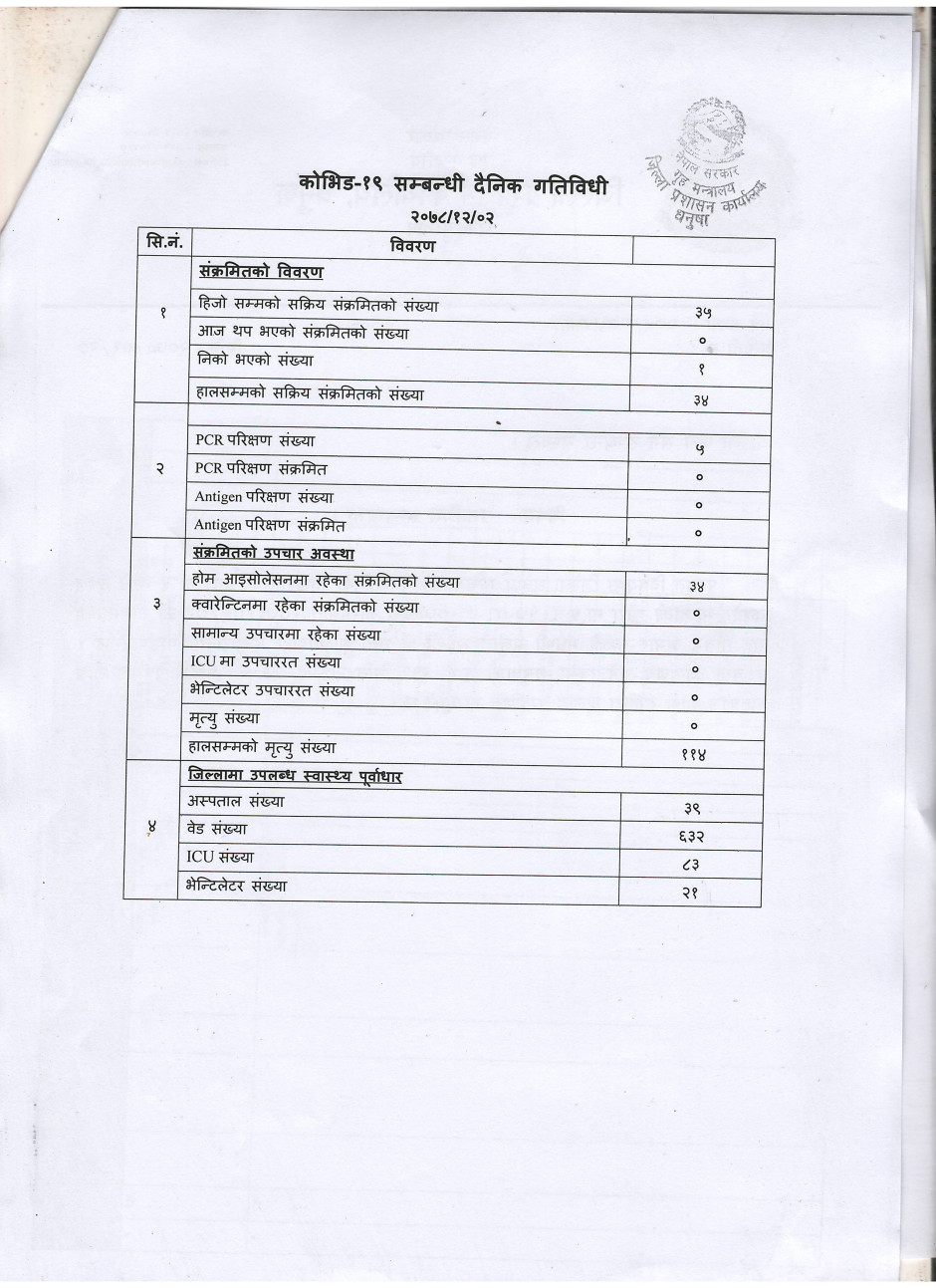 २०७८/१२/०२ काेभिड १९ सम्बन्धी दैनिक गतिविधी