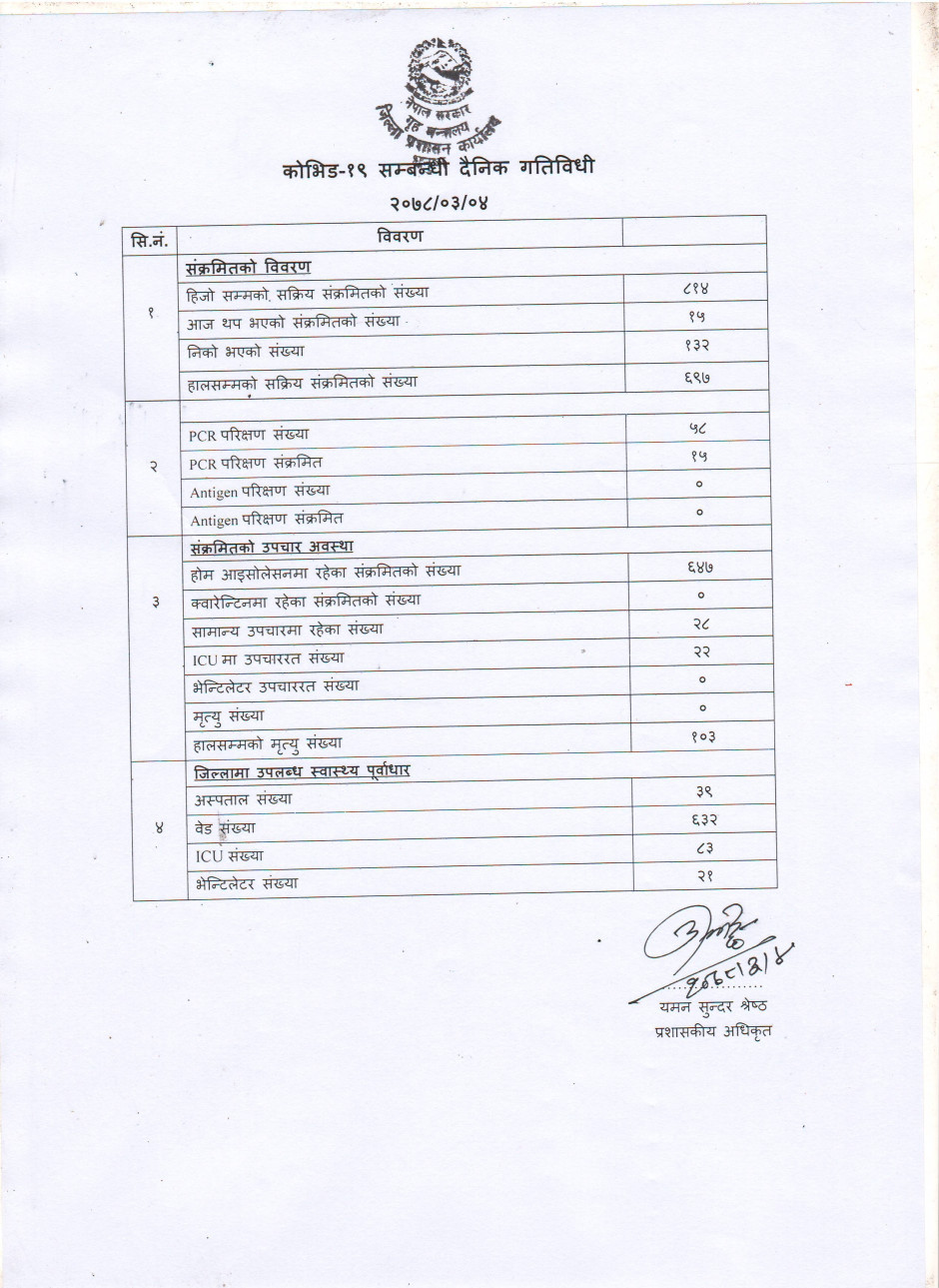 २०७८/०३/०४ काेभिड १९ सम्बन्धी दैनिक गतिविधी