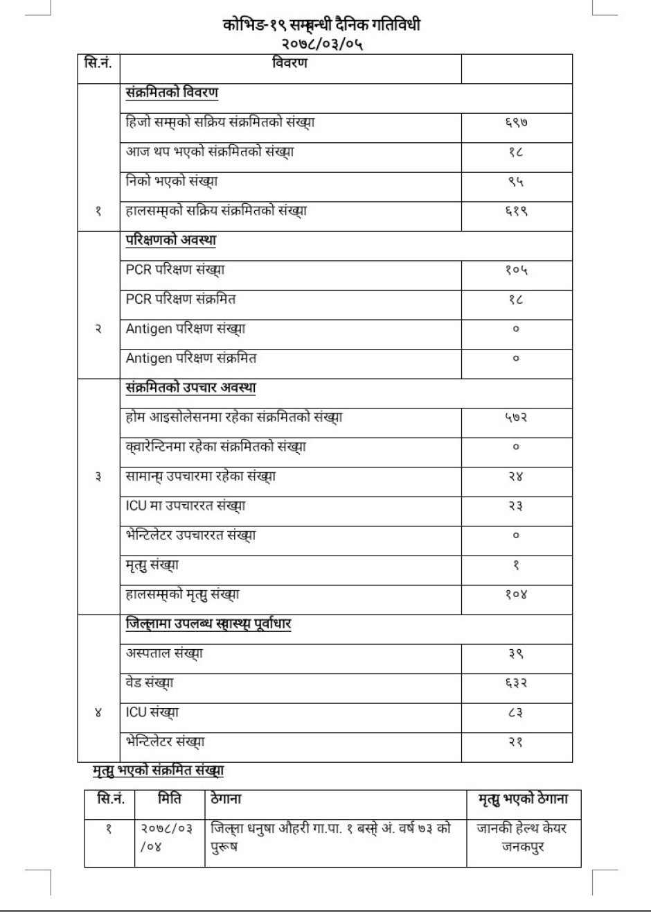 २०७८/०३/०५ काेभिड १९ सम्बन्धी दैनिक गतिविधी