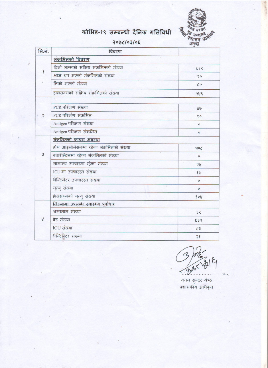 २०७८/०३/०६ काेभिड १९ सम्बन्धी दैनिक गतिविधी