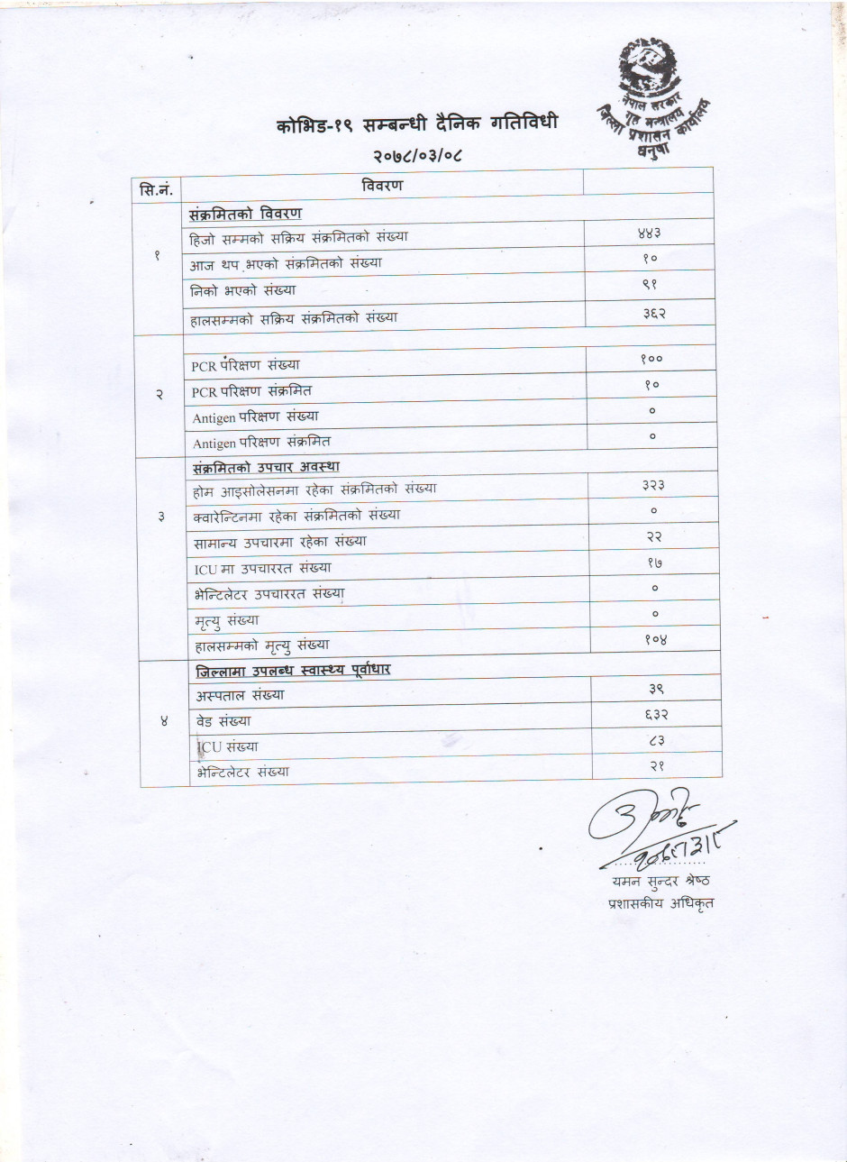 २०७८/०३/०८ काेभिड १९ सम्बन्धी दैनिक गतिविधी