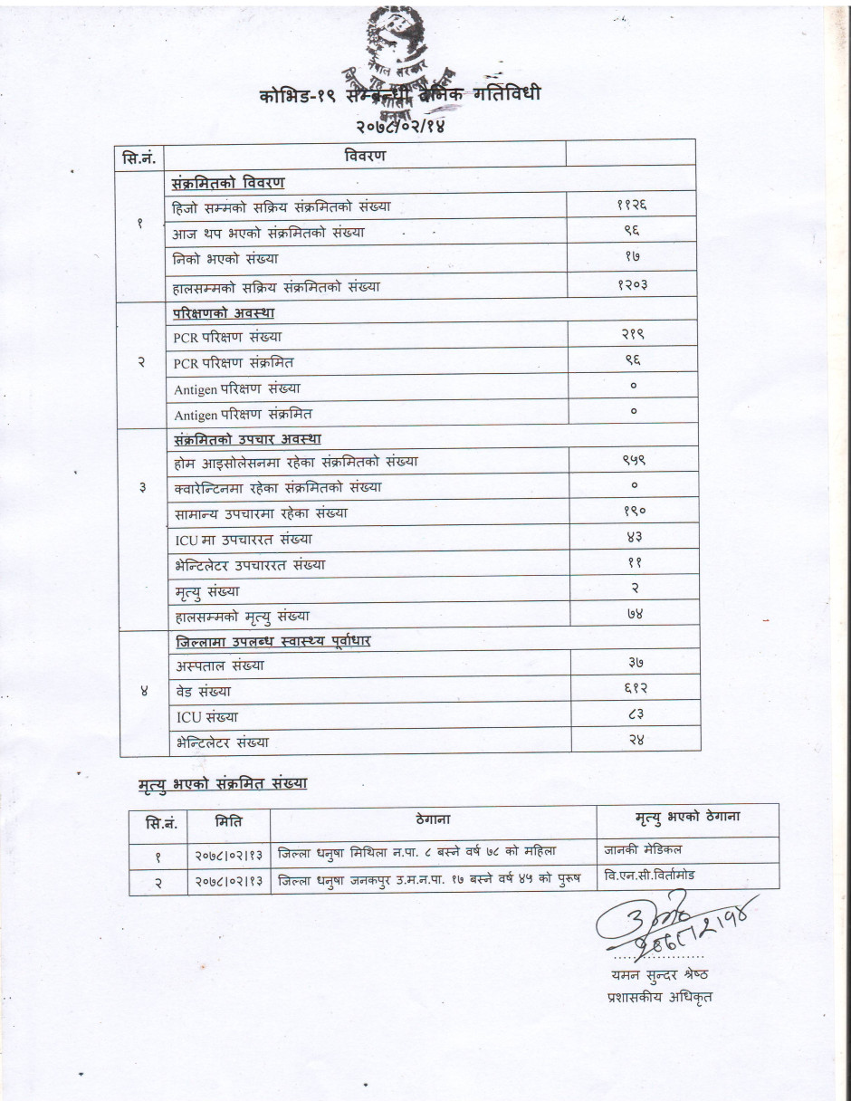 २०७८/०२/१४ काेभिड १९ सम्बन्धी दैनिक गतिविधी