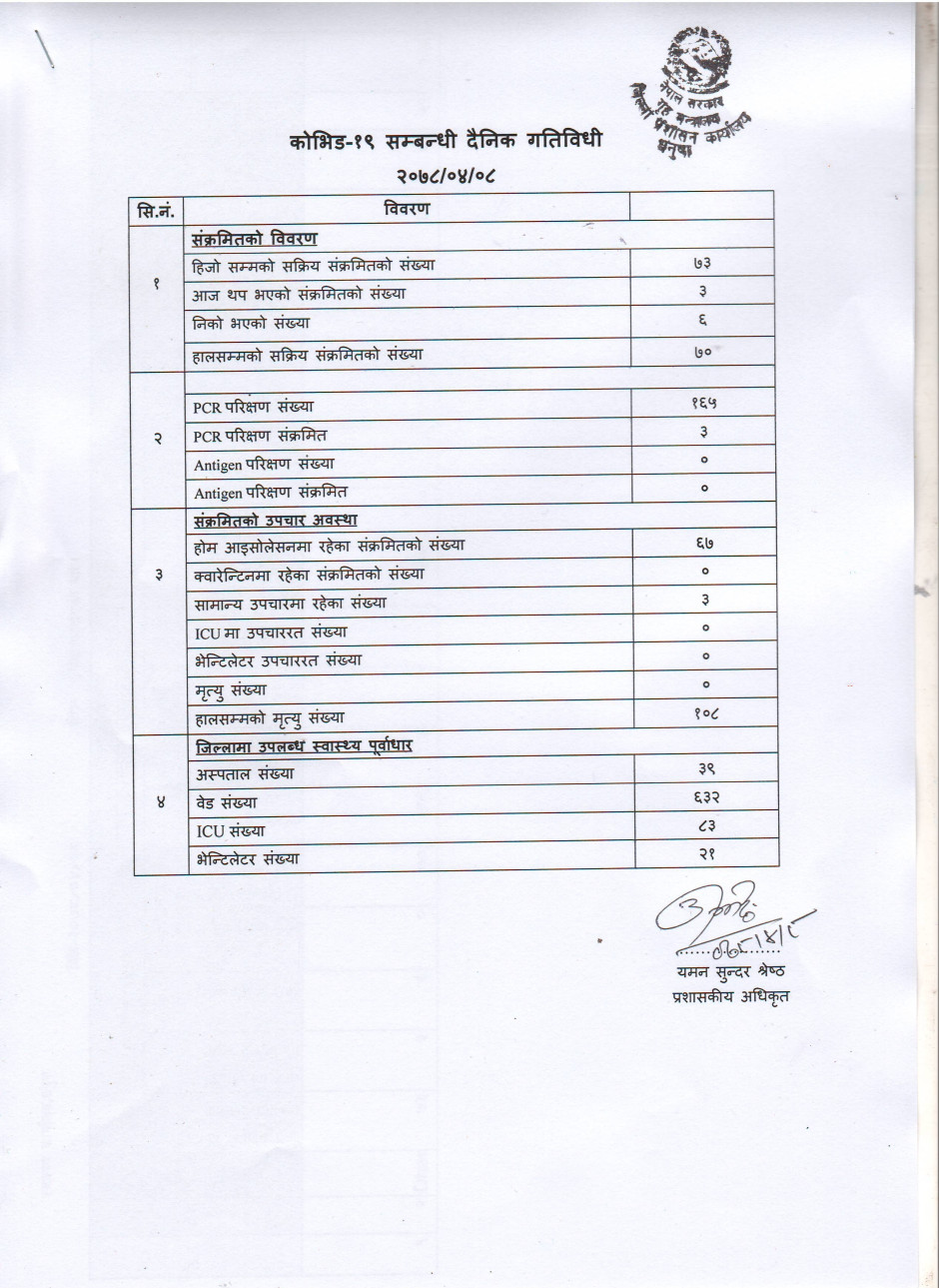 २०७८/०४/०८ काेभिड १९ सम्बन्धी दैनिक गतिविधी