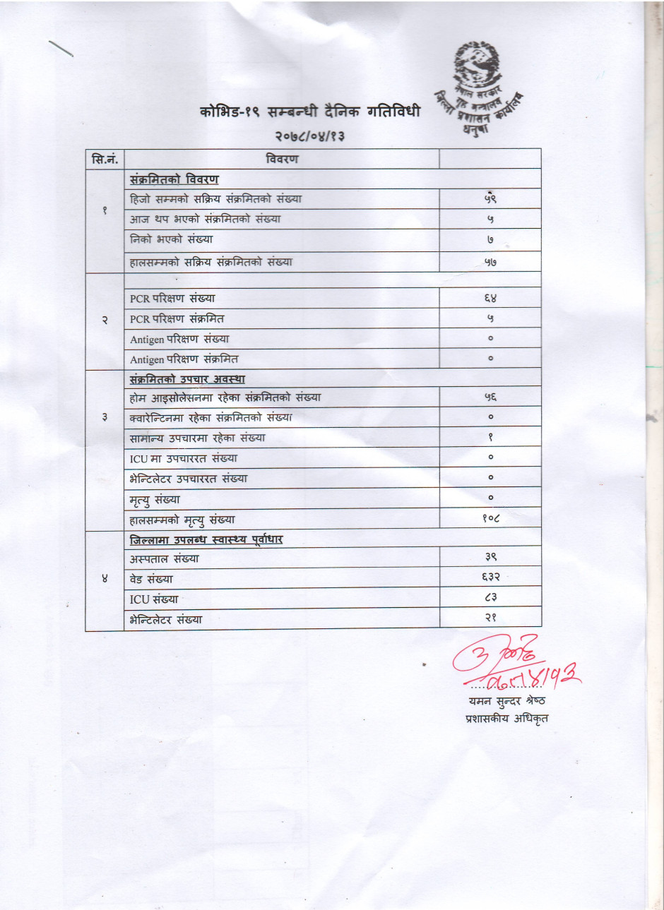 २०७८/०४/१३ काेभिड १९ सम्बन्धी दैनिक गतिविधी