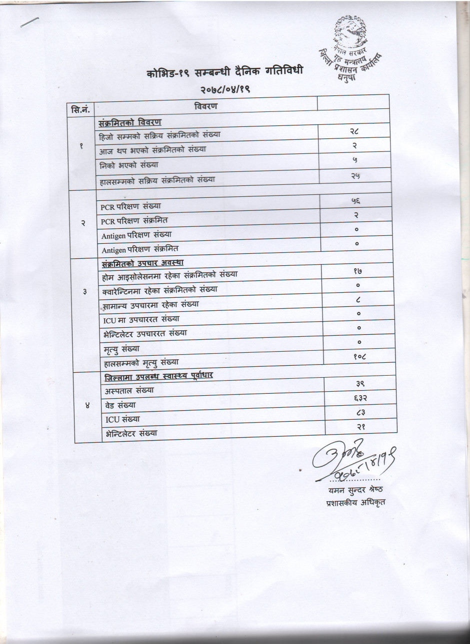 २०७८/०४/१९ काेभिड १९ सम्बन्धी दैनिक गतिविधी