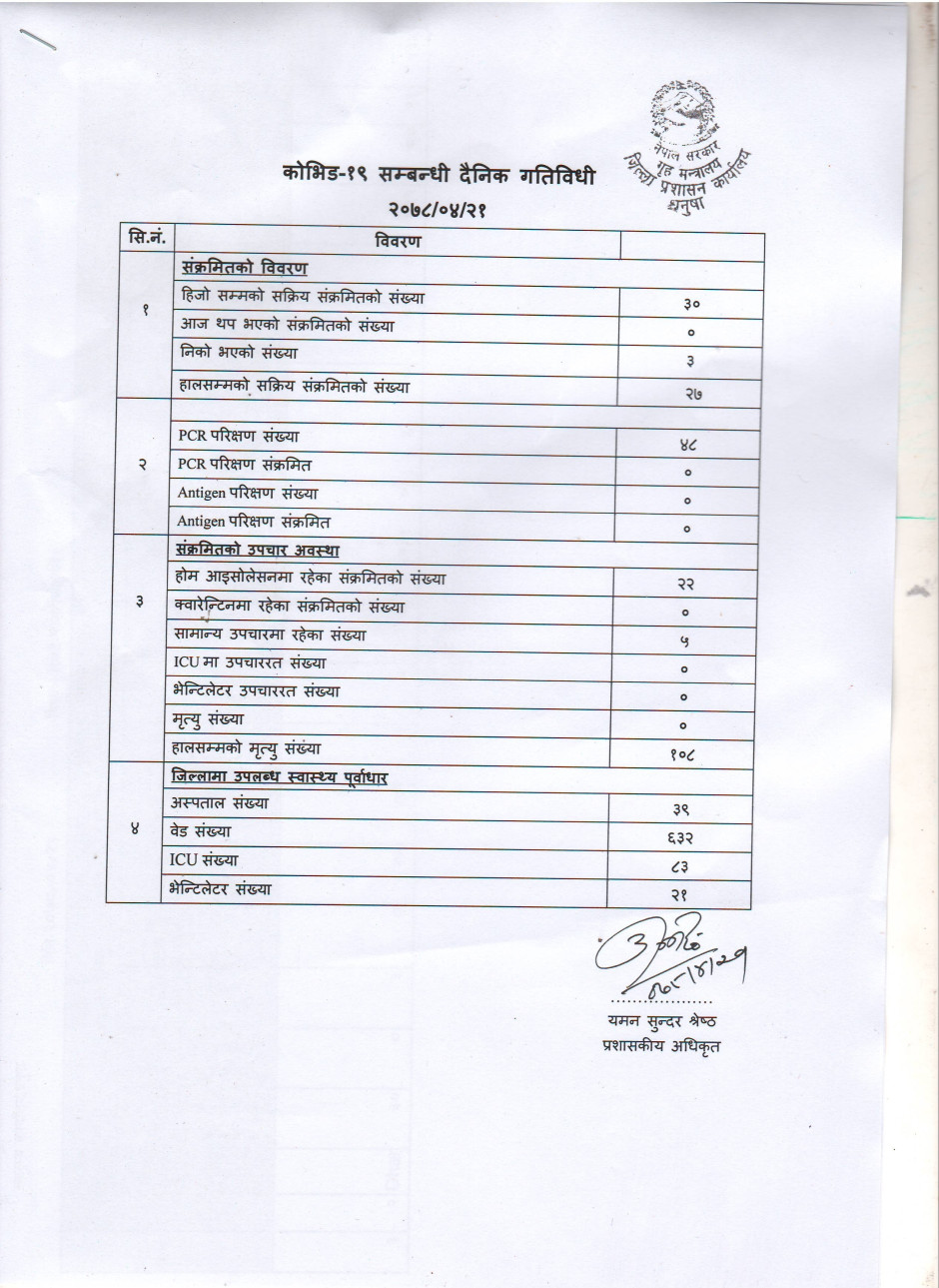 २०७८/०४/२१ काेभिड १९ सम्बन्धी दैनिक गतिविधी