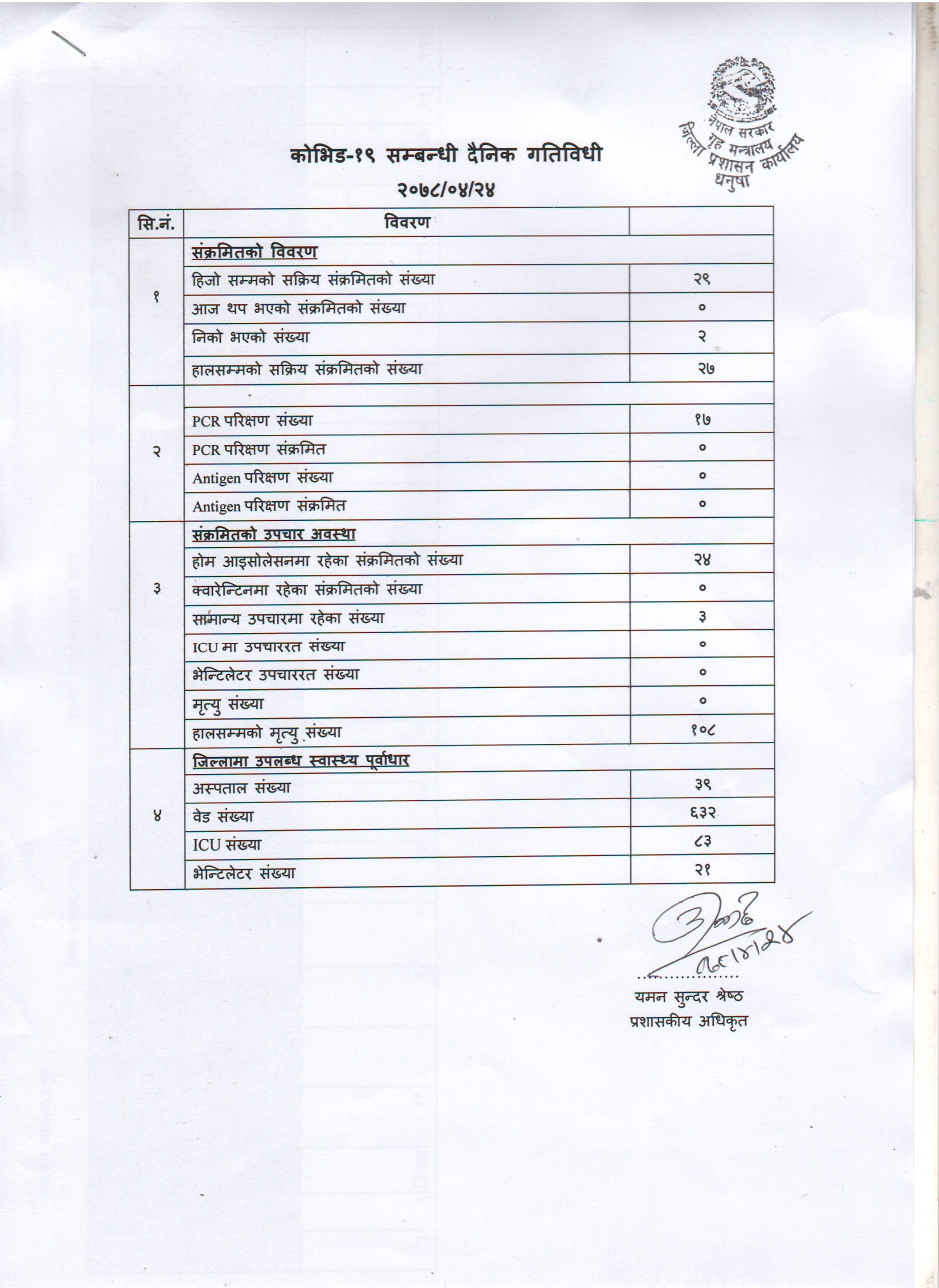 २०७८/०४/२४ काेभिड १९ सम्बन्धी दैनिक गतिविधी