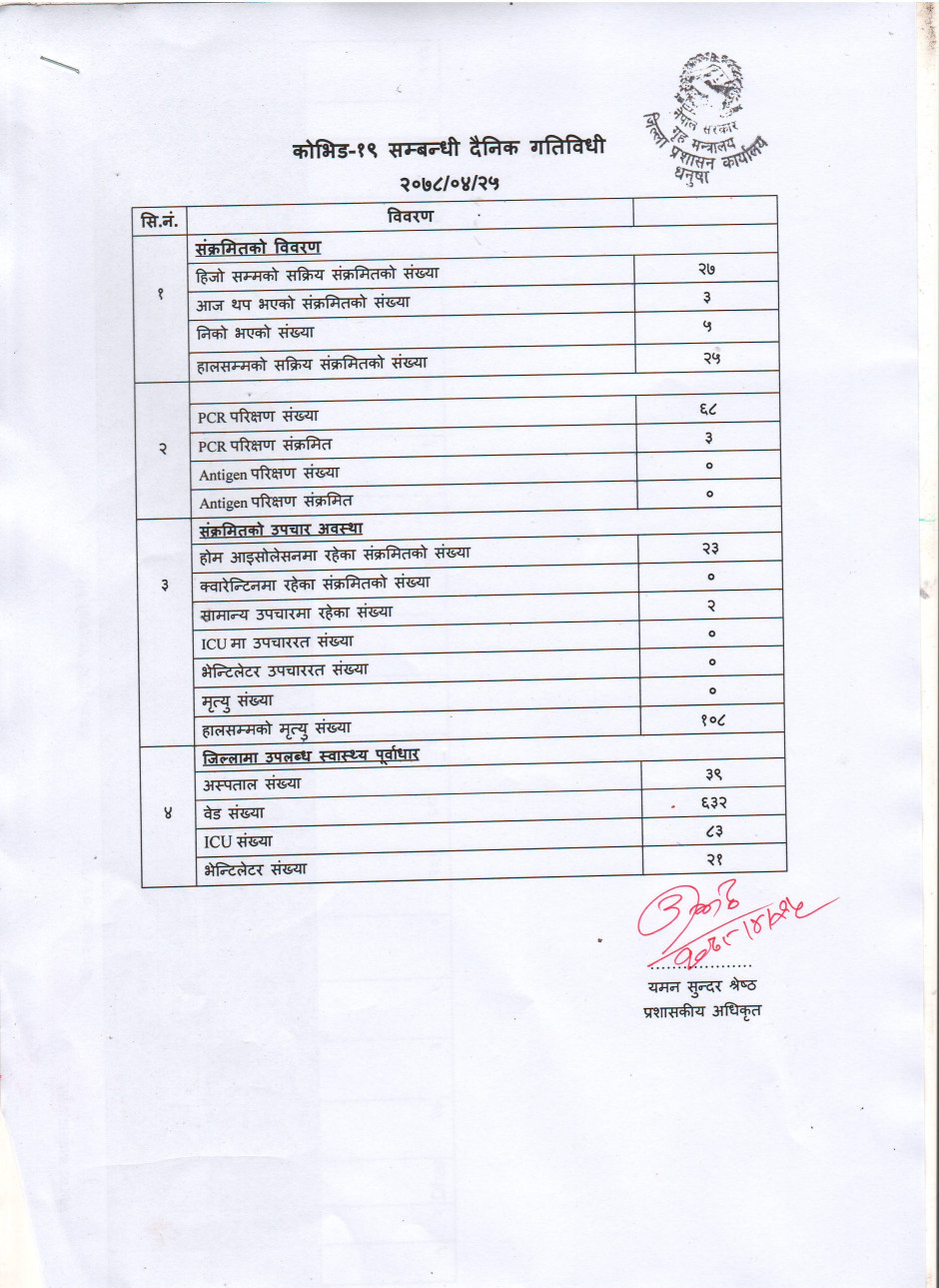 २०७८/०४/२५ काेभिड १९ सम्बन्धी दैनिक गतिविधी