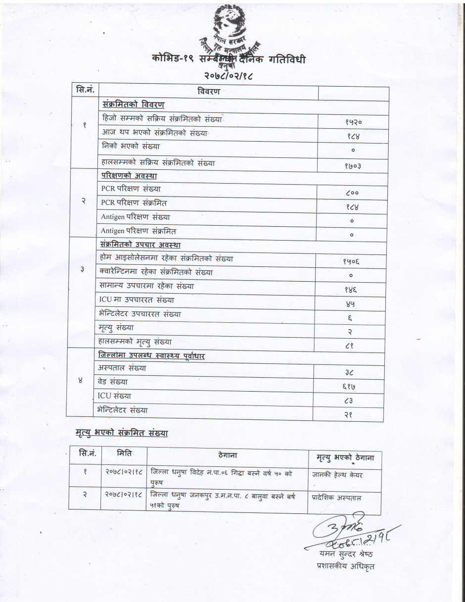२०७८/०२/१८ काेभिड १९ सम्बन्धी दैनिक गतिविधी