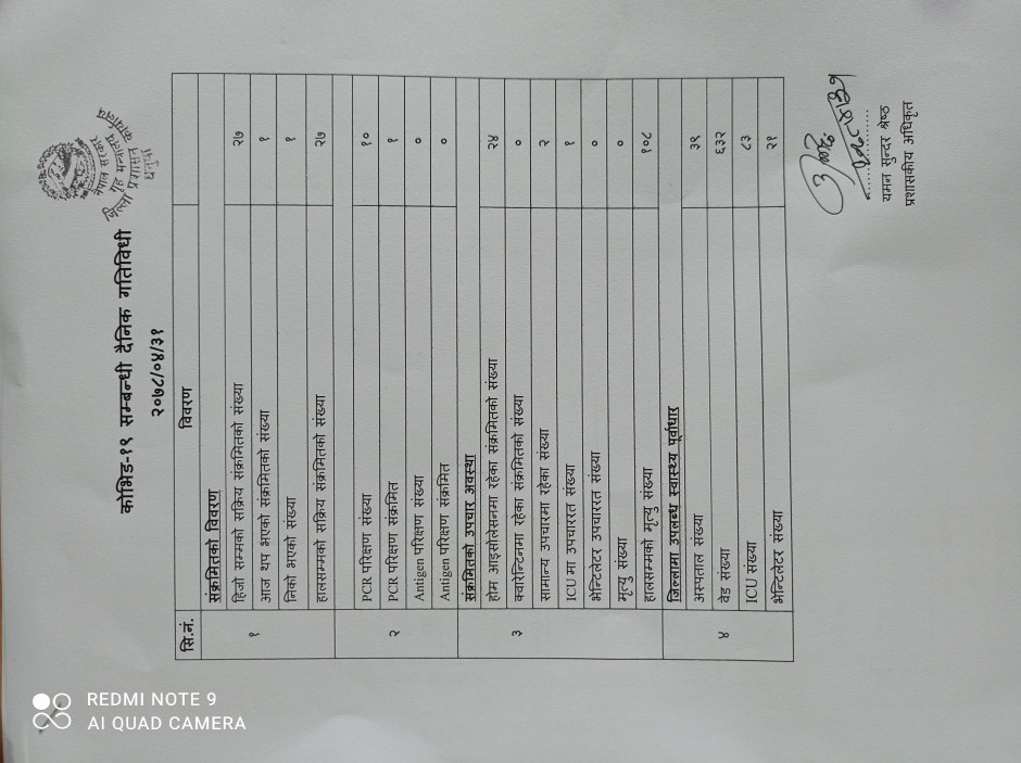 २०७८/०४/३१ काेभिड १९ सम्बन्धी दैनिक गतिविधी