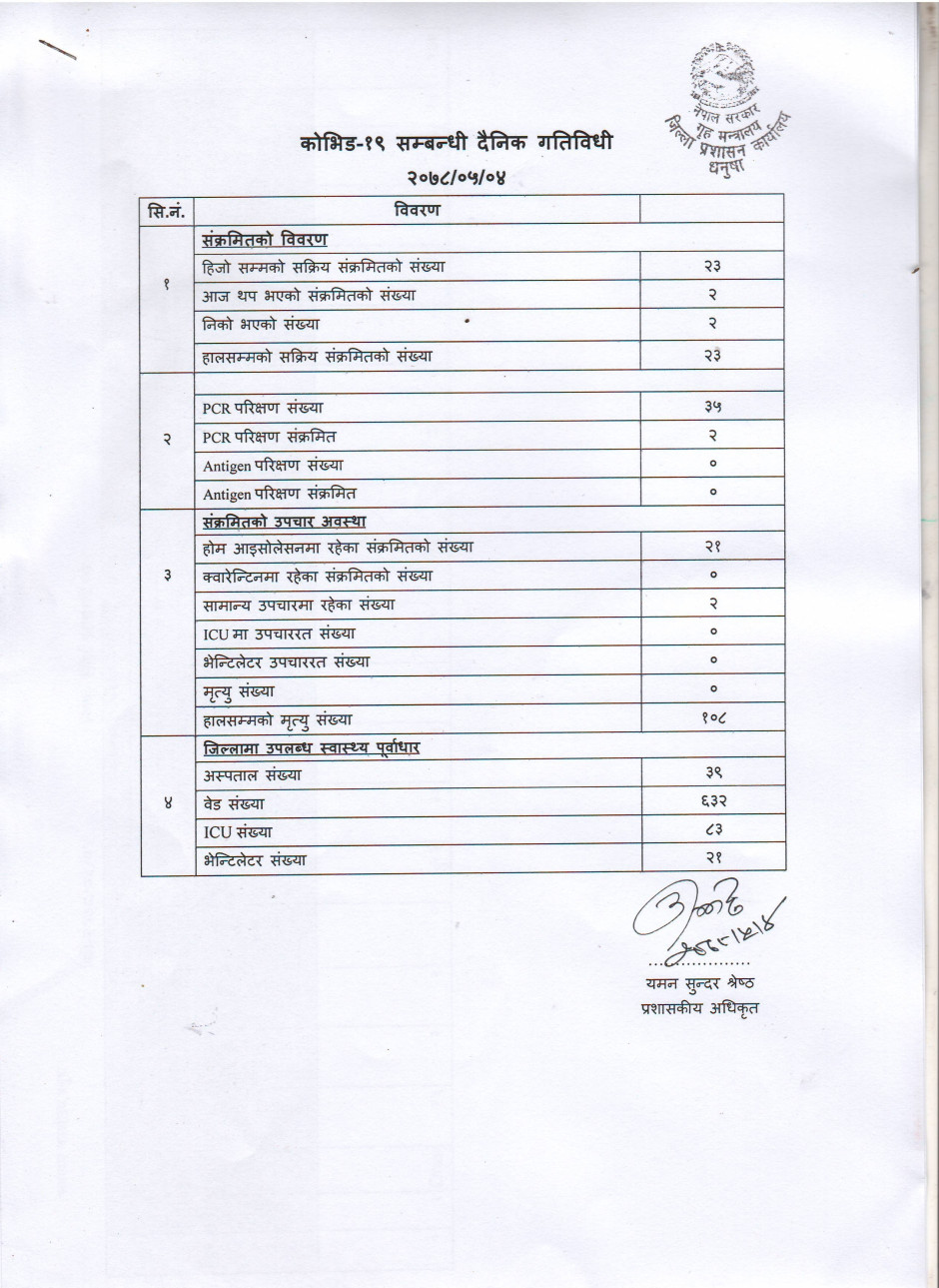 २०७८/०५/०४ काेभिड १९ सम्बन्धी दैनिक गतिविधी